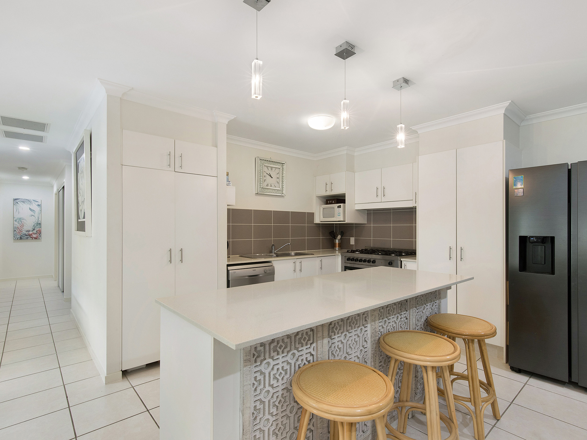 4. Gourmet kitchen - stone bench tops, huge free-standing gas cooker, stainless steel dishwasher & 2 pantries