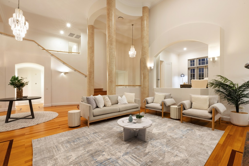 Extravagant living and entertaining are all confined ground floor, with those stunning views from almost every room including the massive formal lounge, the additional family lounge, dining area, spacious kitchen and sunny alfresco that borders the glittering pool.