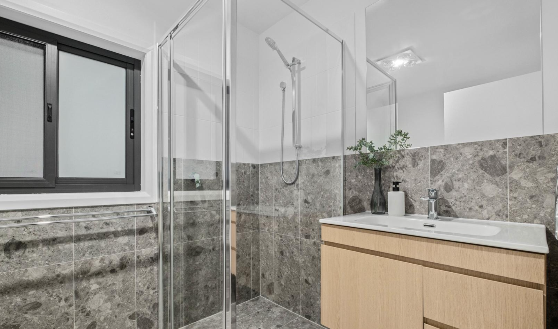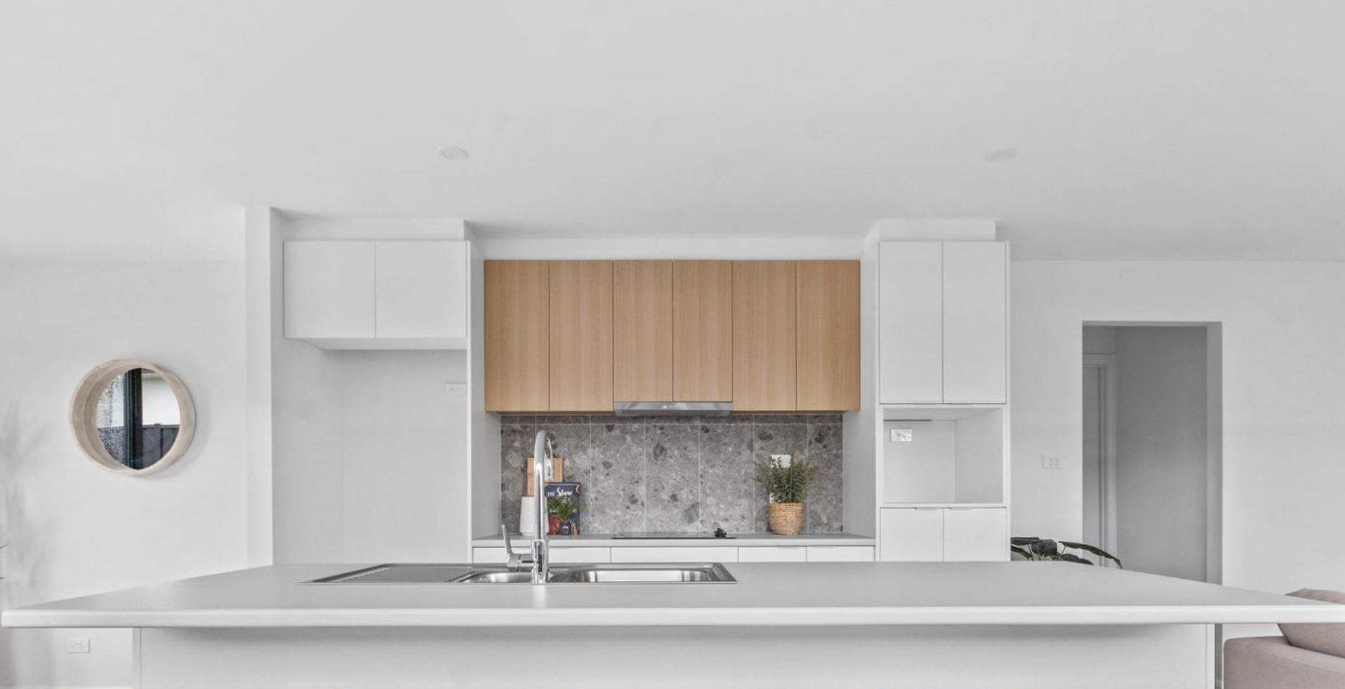 - Modern Appliances: Features a 40mm benchtop, 60cm ceramic cooktop, externally ducted rangehood, electric oven.