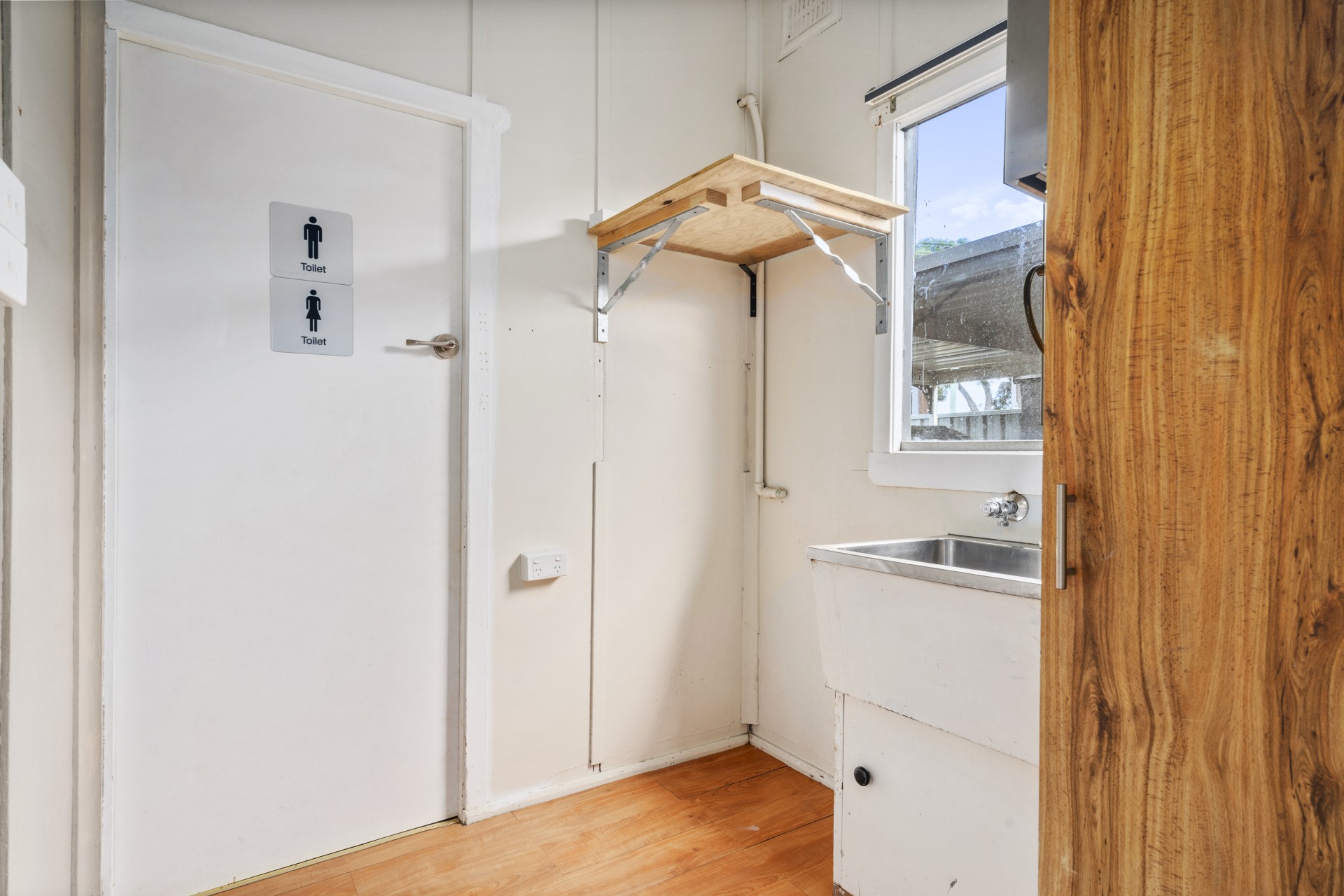 1 bathroom with toilet combined shower and bath 2nd toilet out near laundry