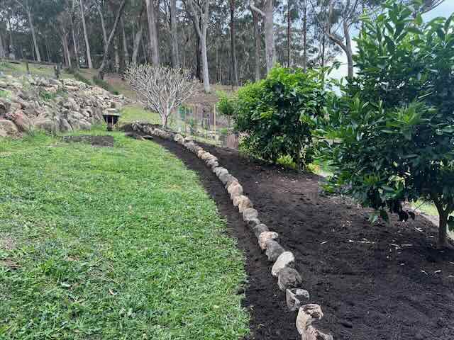 The gardens are established and has fruit trees like lemon, lime, kefir lime, finger lime, oranges, apple, dates and more.
