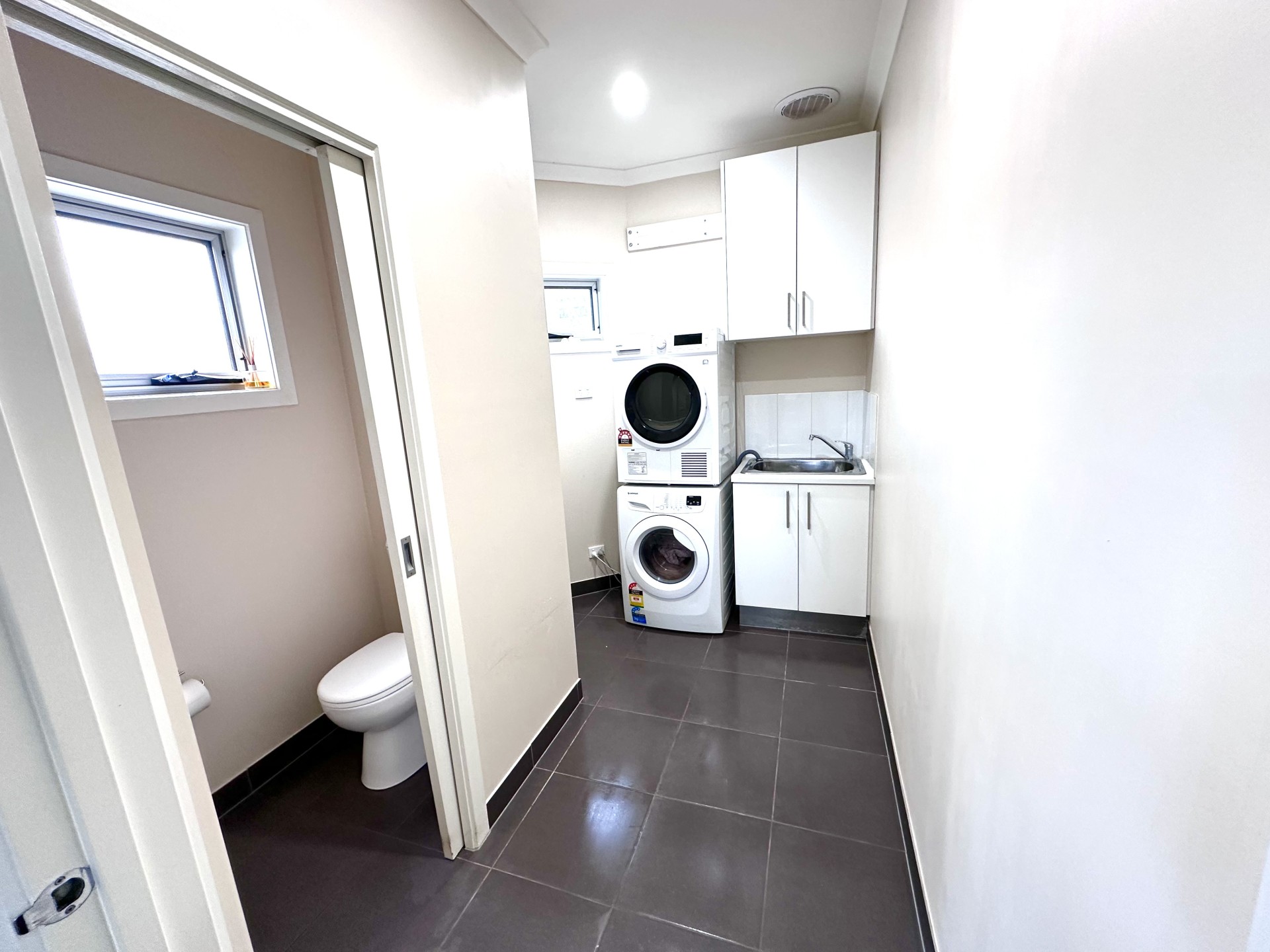 The house is low-cost to heat and cool, and includes two split systems as well as ducted gas heating. The kitchen is equipped with stainless-steel appliances and stone benchtops, and boasts plentiful storage and natural light. A laundry room with additional toilet and sink adds to the significant storage space in this property.
