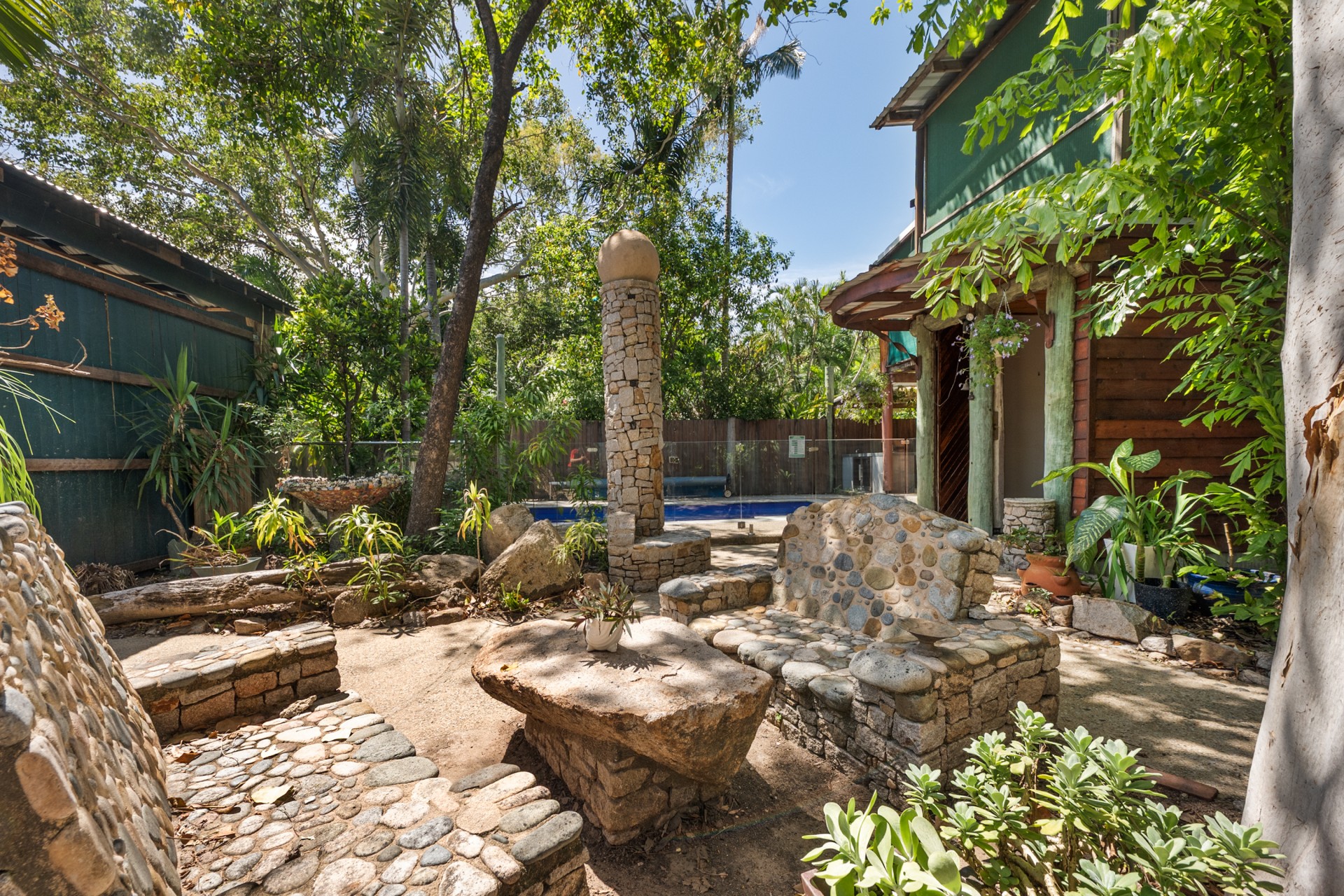 The garden is a haven for native wildlife, where you can watch Ulysses butterflies and Cairns birdwings float by, while sunbirds often choose to nest and love to fly in when the sprinkler is turned on. Or soak in the golden-hour views of the surrounding hills from the pool or outside dining area.