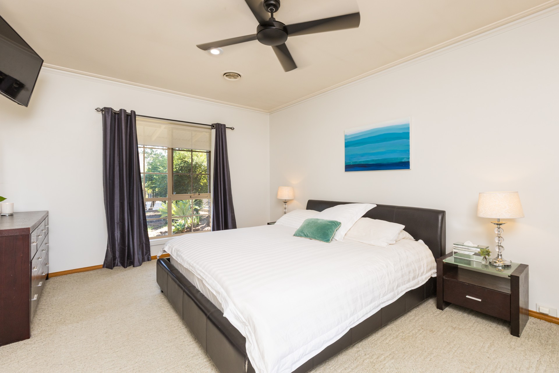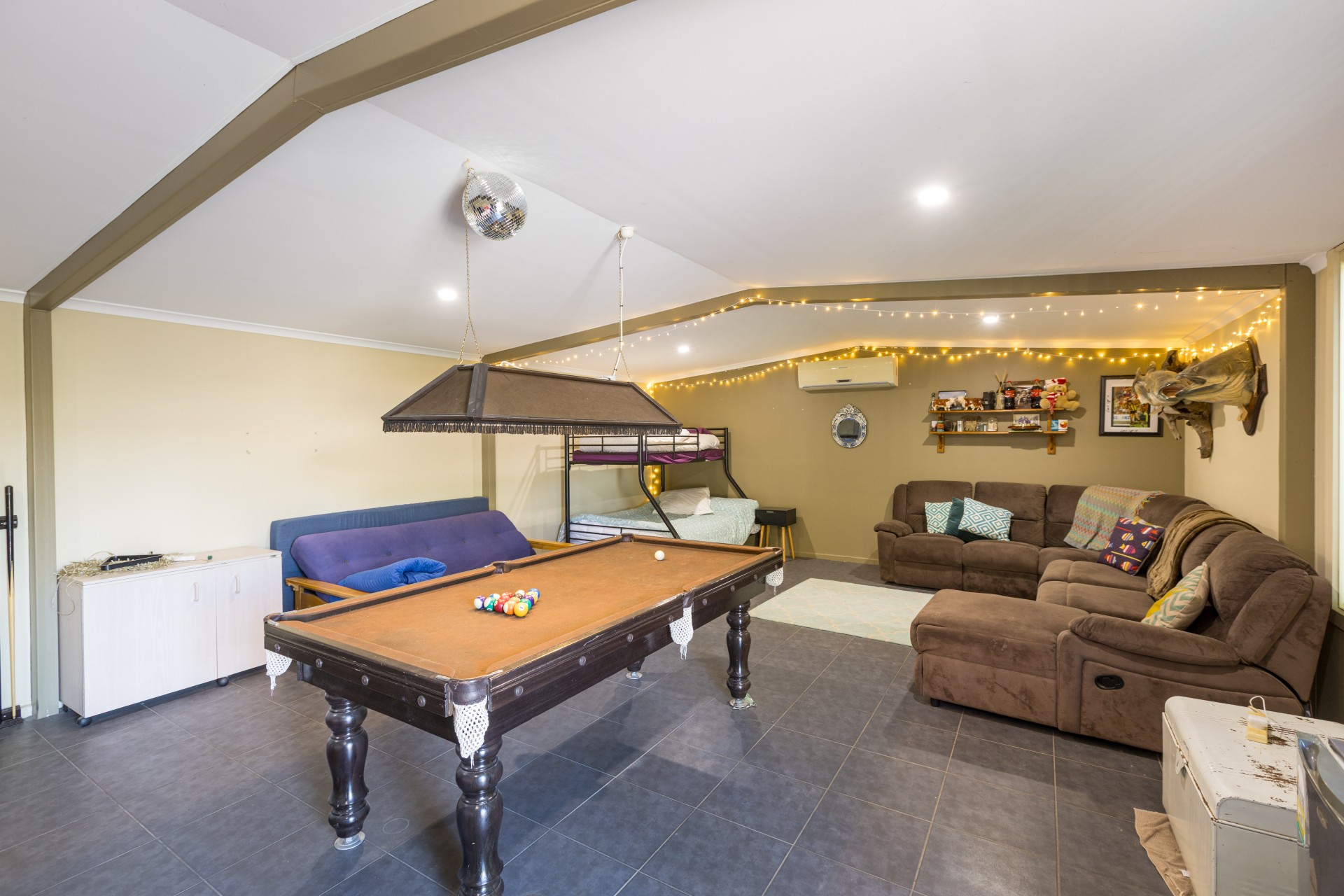 The main residence is equiped with fully ducted cooling/heating, wood heater for ambience, ducted vacuum system and 10KW solar panels...there really are too many features to list.