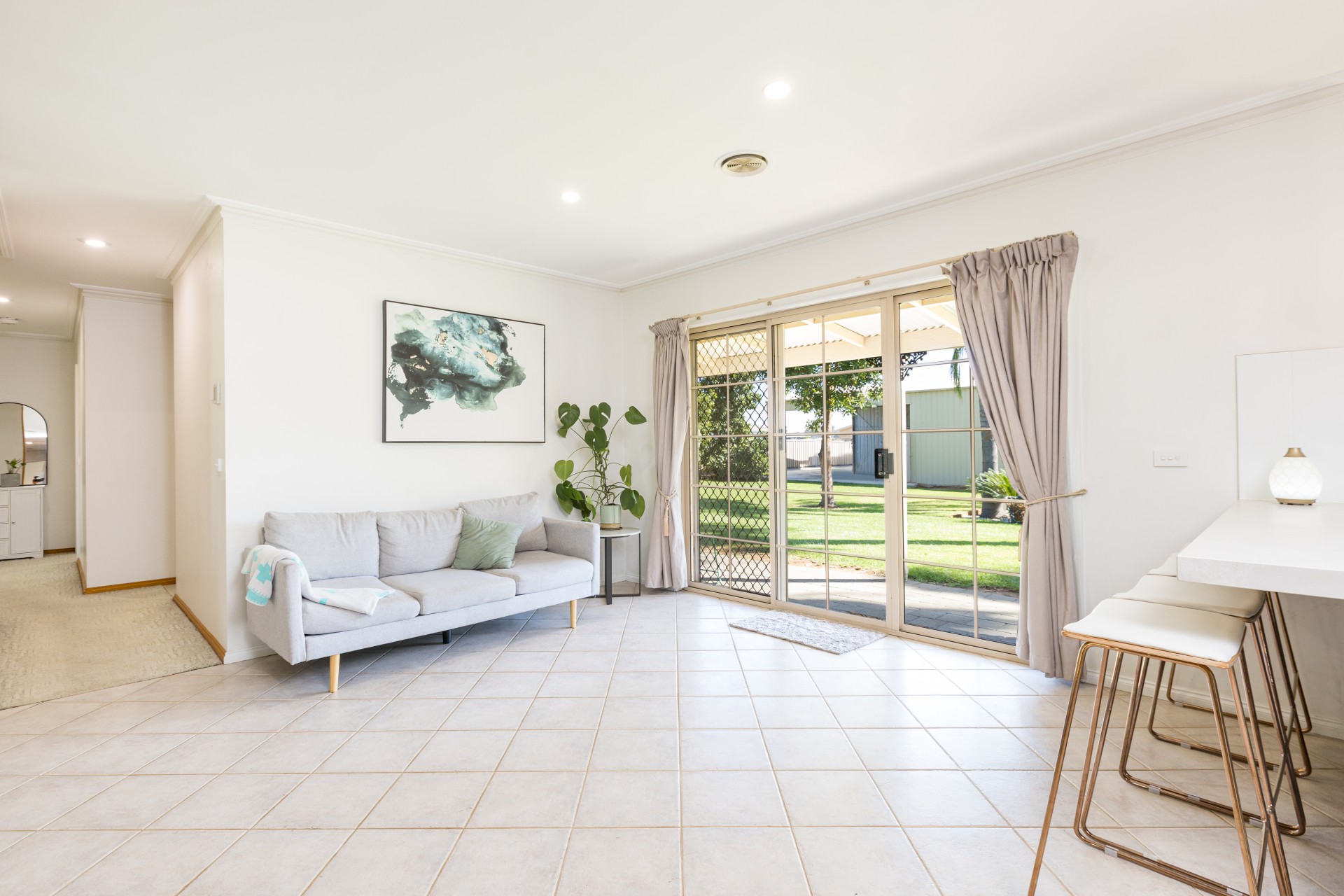 Opposite this space is 3 more bedrooms all with mirrored BIRs and a main bathroom featuring a spa bath, renovated shower and seperate WC. Laundry with external access ajoins this area.