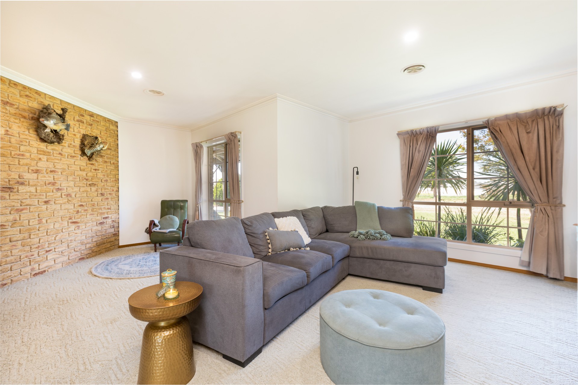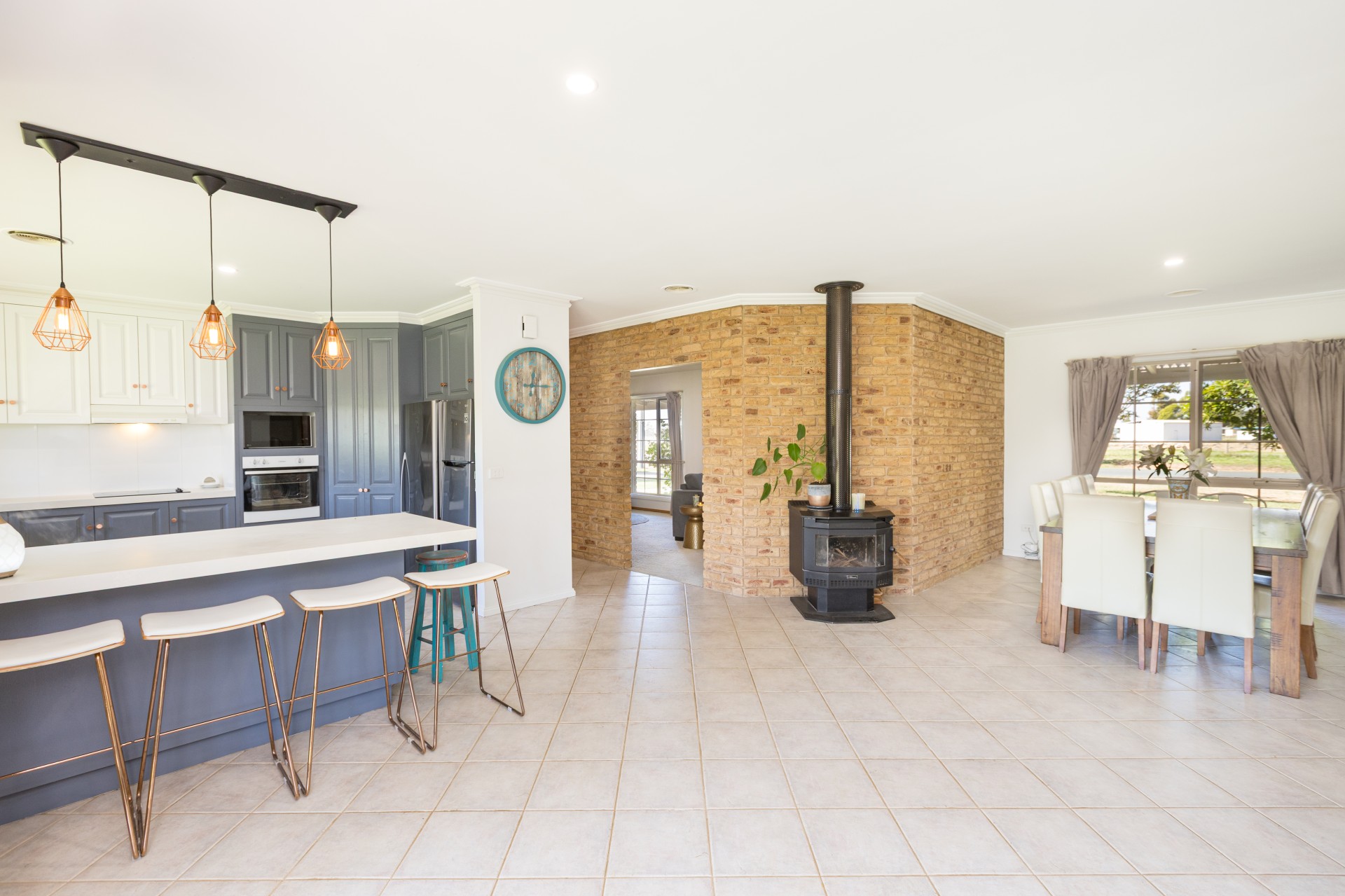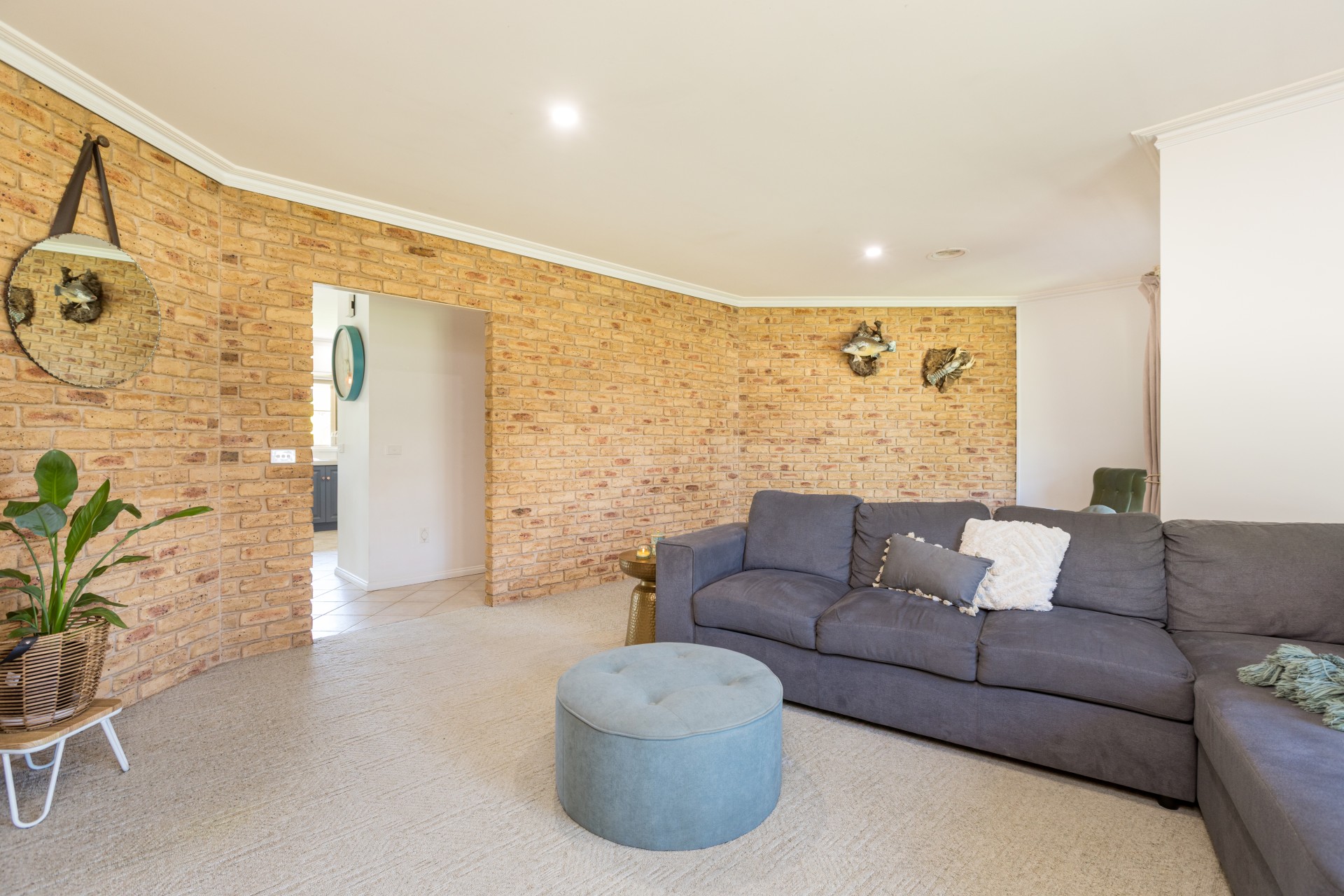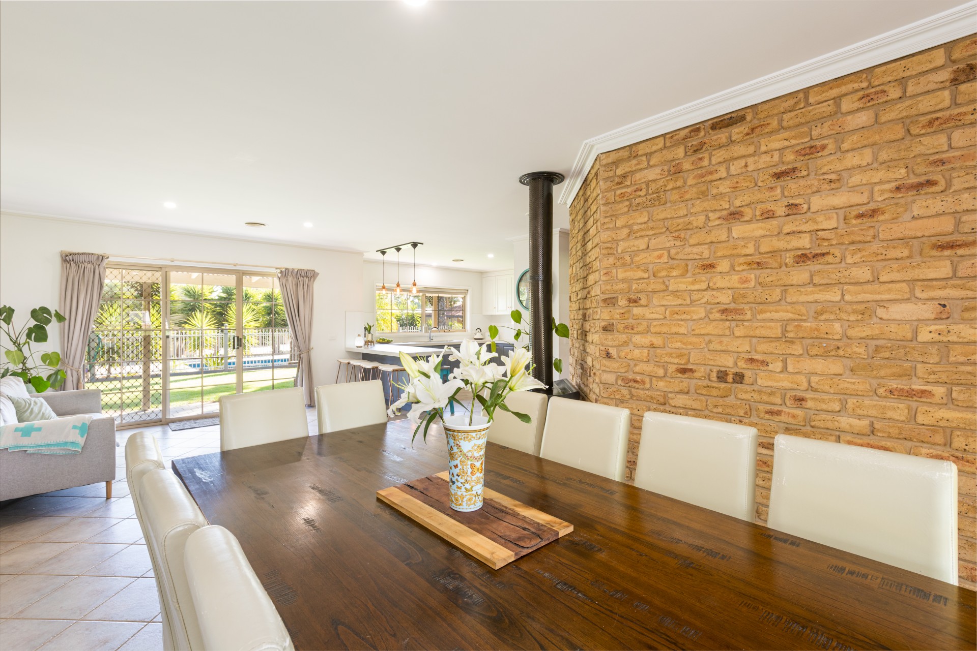Continue down the hallway, with brick feature wall to the seperate formal lounge/media space. This opens up to the large, classically updated kitchen complete with stone bench tops and spacious open-plan living & dining areas bathed in lots of natural light.