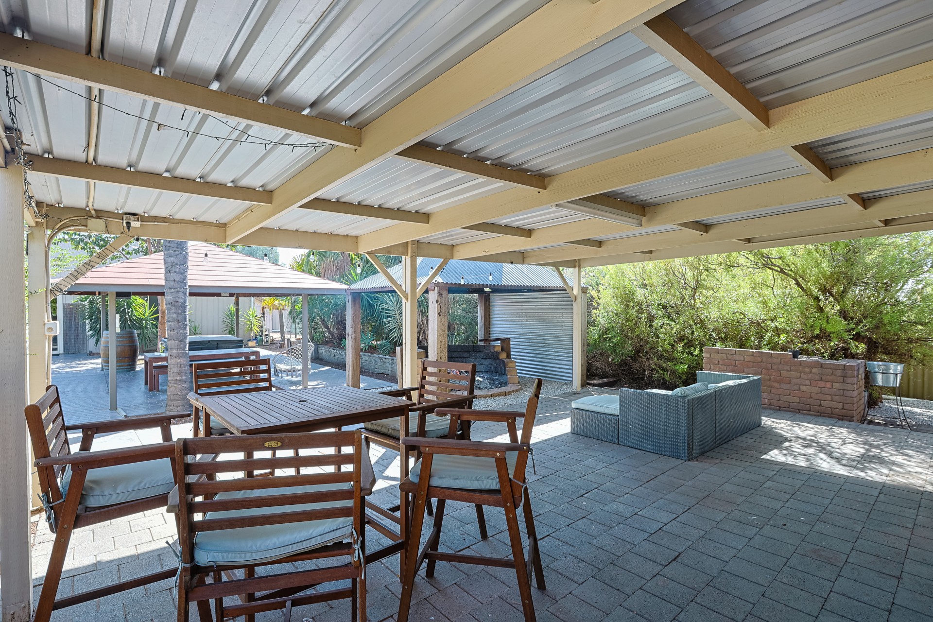 The generous backyard boasts 2 large undercover entertainment areas, 12m self-cleaning pool with optional solar heating, huge brick fire-pit, basketball court area and established fruit trees including citrus, avocado and olive. Rear access to the property is accessible by a 7m remote sliding gate.