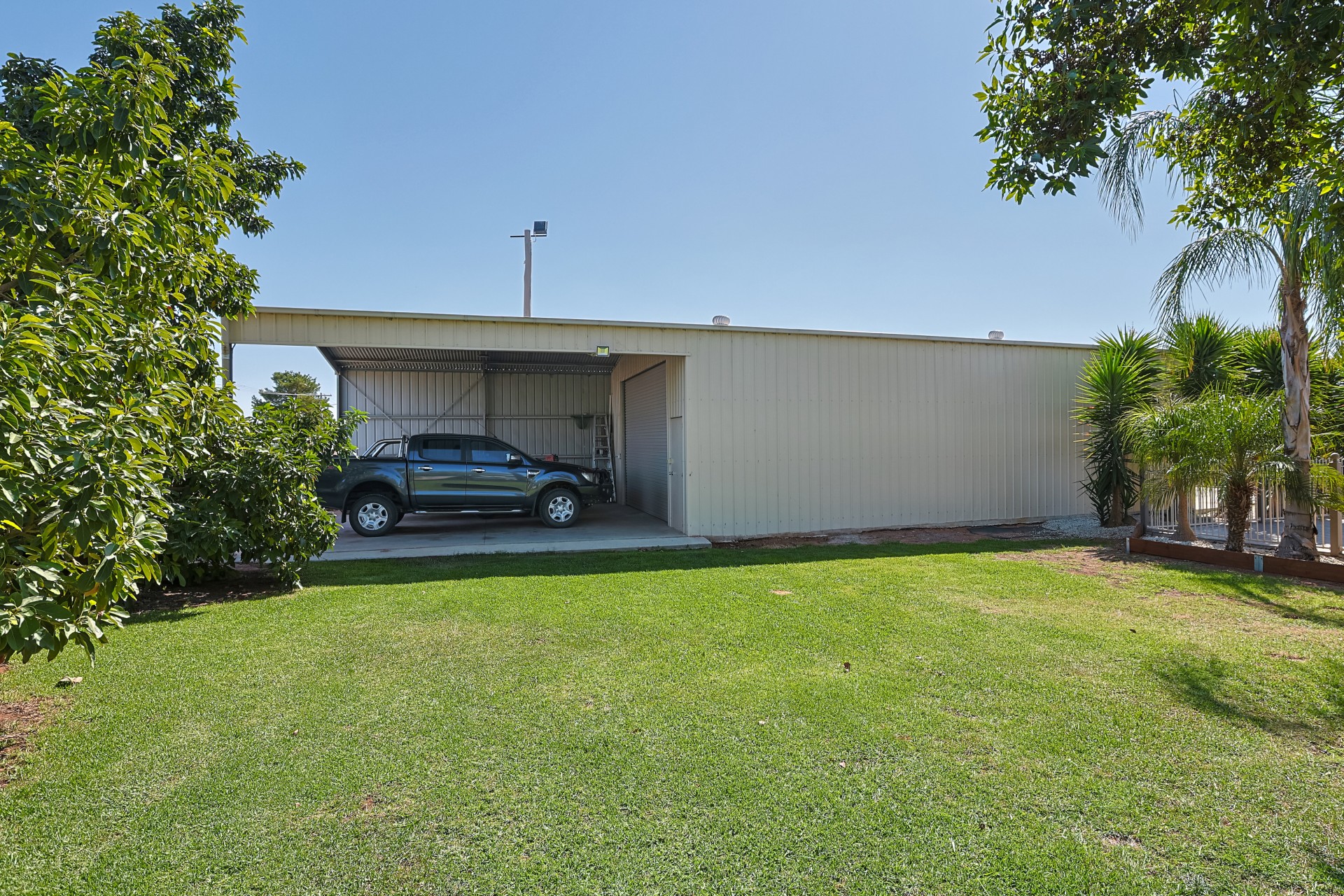Storage and security is never an issue with a large 12x8m shed, roller door opening 5x3.1m (ample room for access of caravan, boat etc) with additional 7x8m covered semi-enclosed overhang. The seperate double garage features 2 remote roller-doors and there is also an additional, gated undercover carport/storage area.
