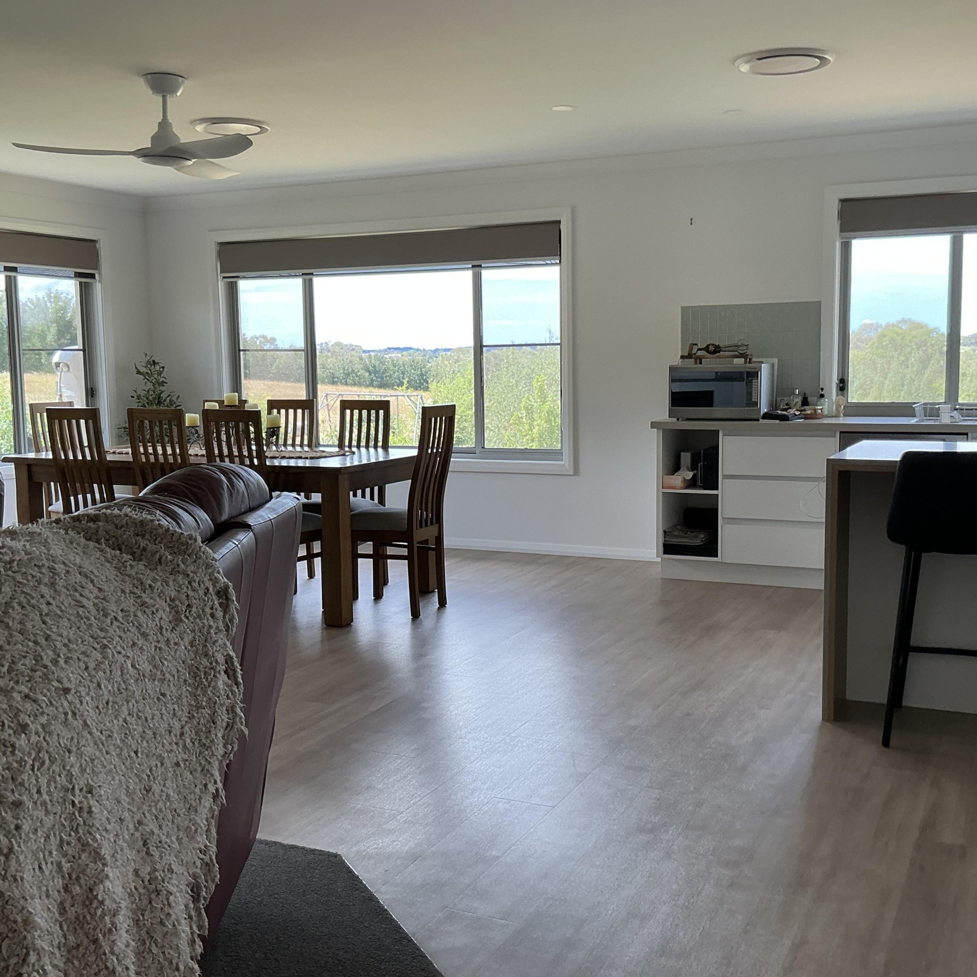 Free flowing open plan kitchen, dining and family room areas