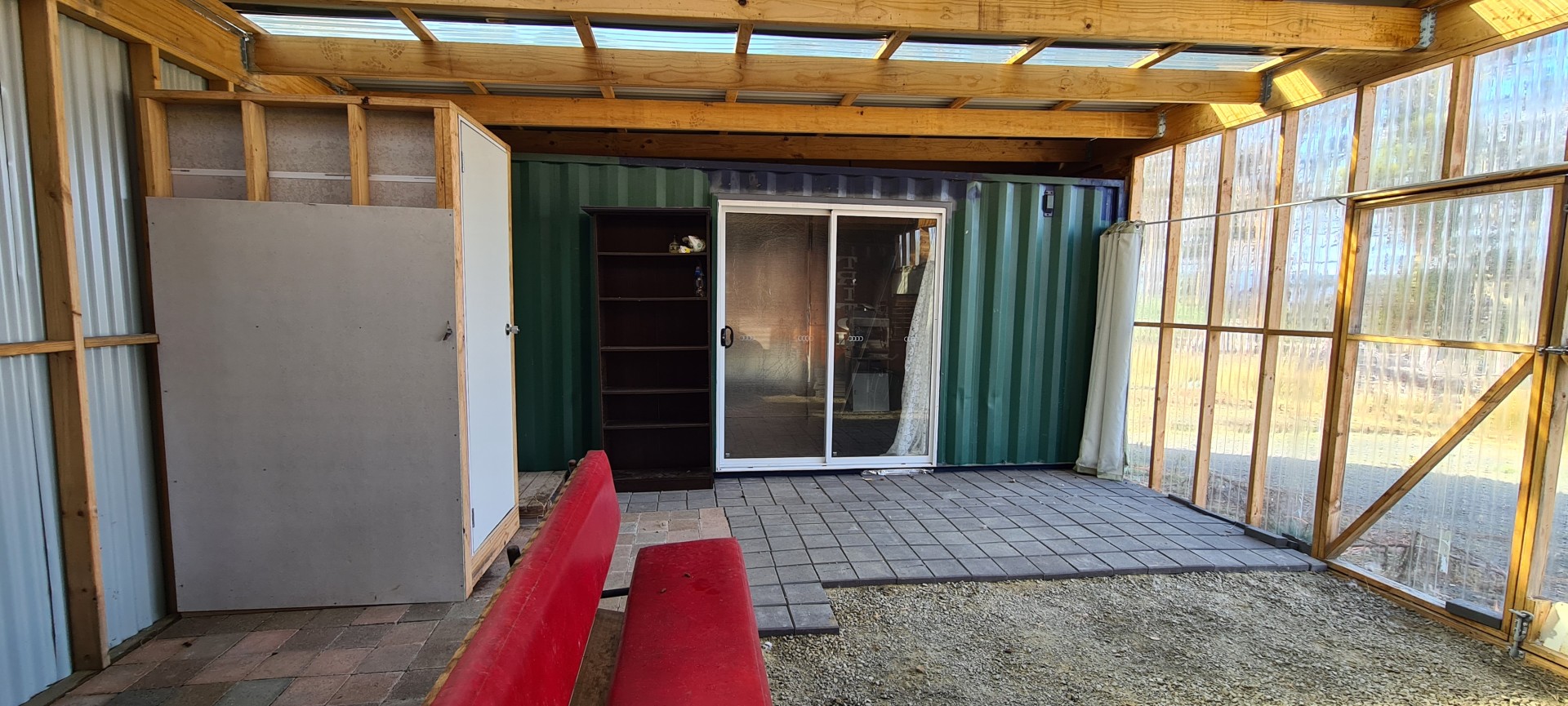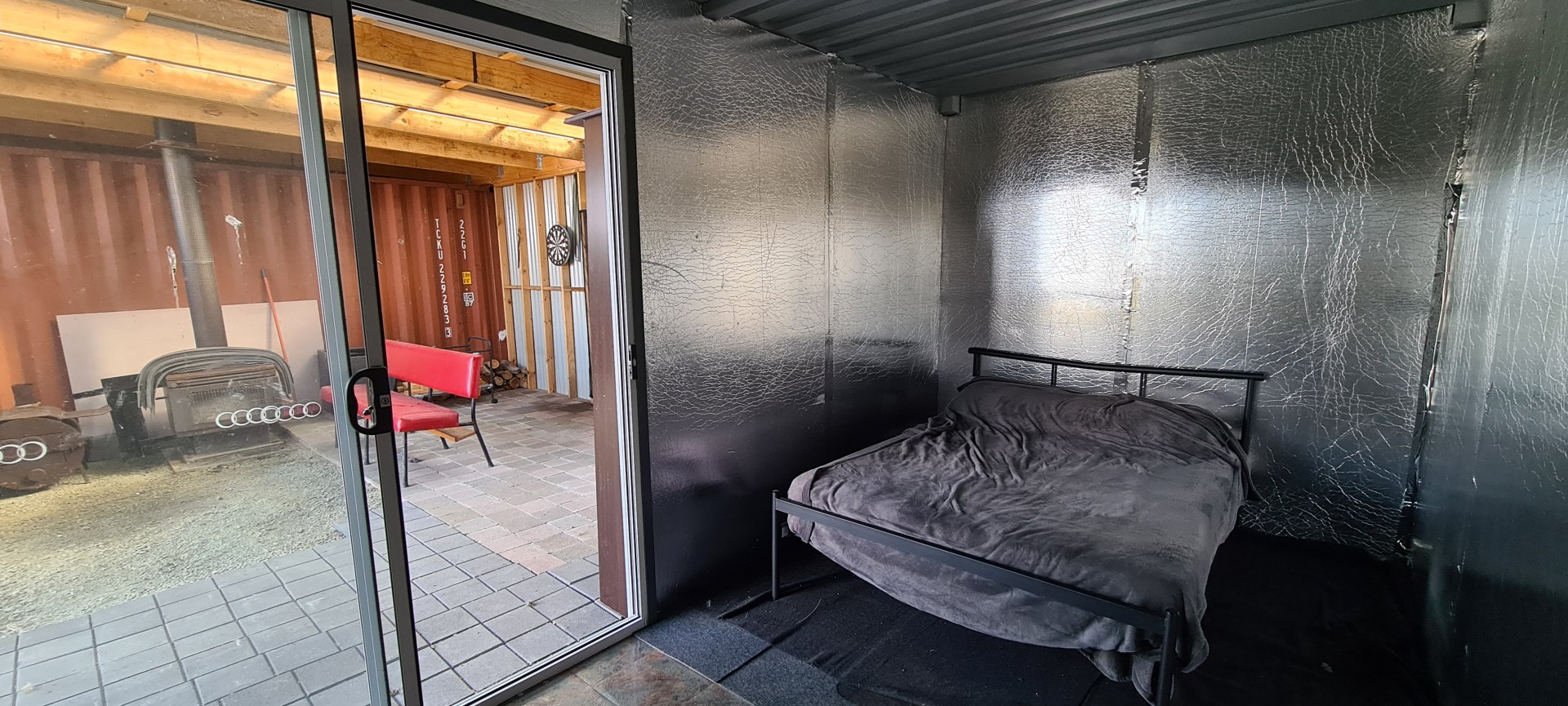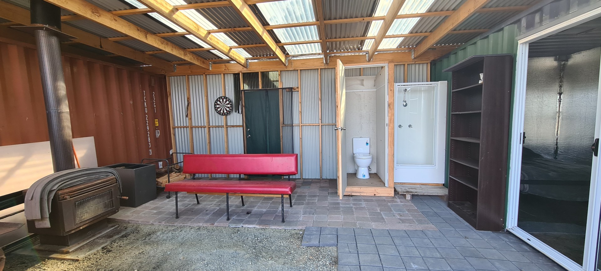 The shack is made up of 2 x 20 foot shipping contains that are enclosed with wood heating in the middle and a shower/toilet with extra storage at the rear. One container has been set up as a bedroom that's insulated and the other is being used as storage. It's free to set it up as you like or just relax and enjoy as is.