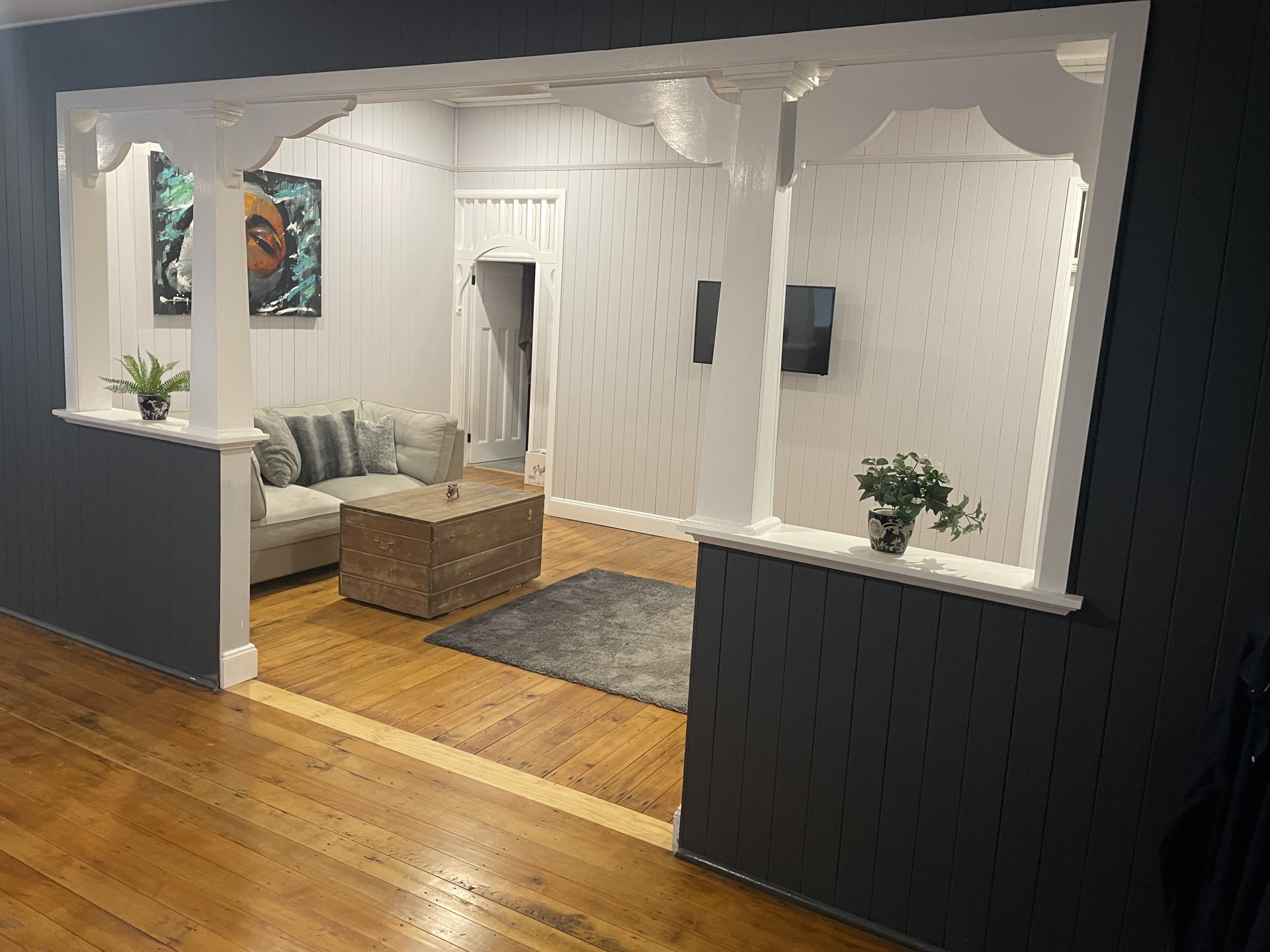 The Beautiful Colonial Finials frame the main lounge and character filled Wooden Floors.