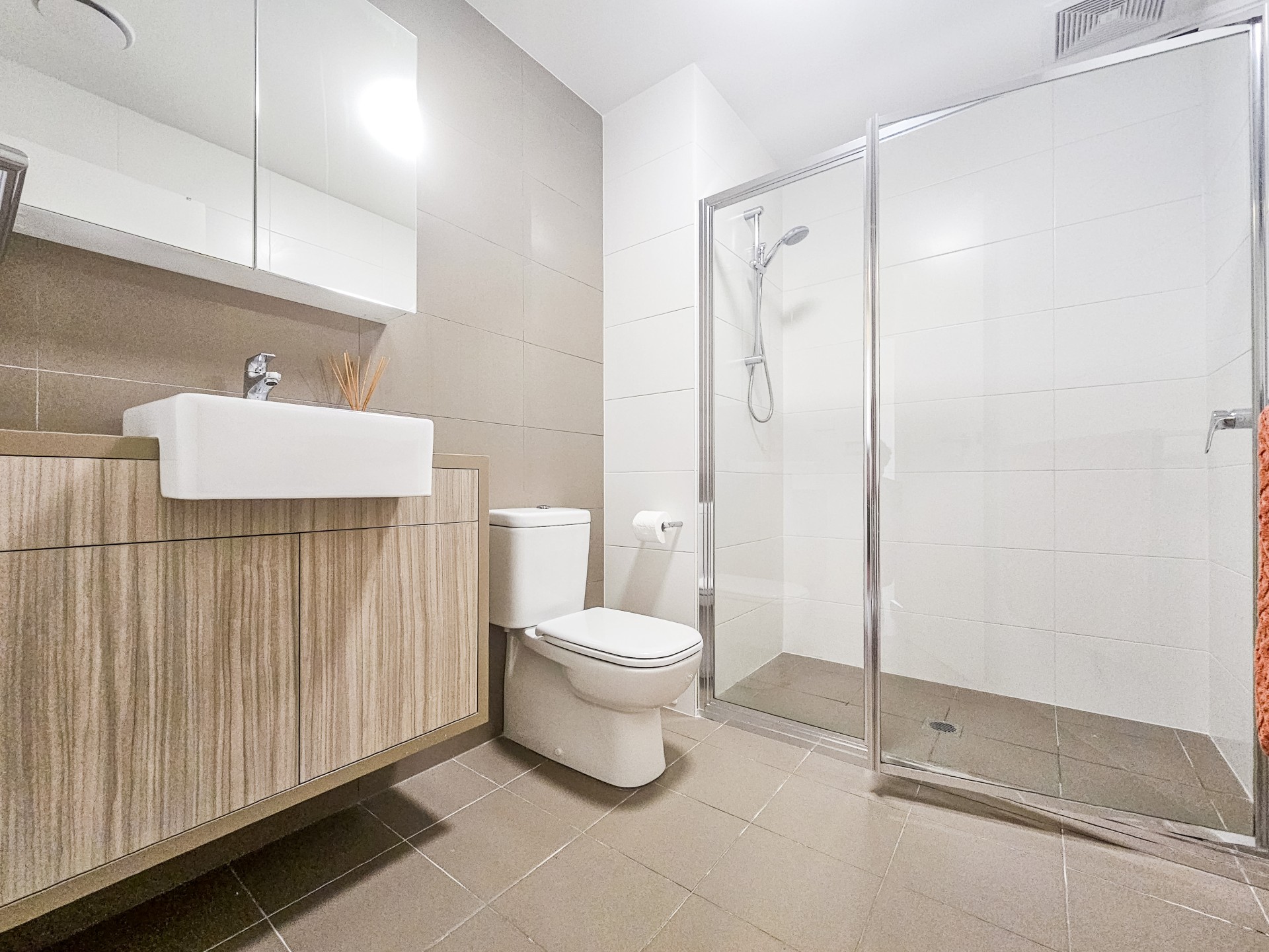 The kitchen has abundant built-in storage, stone bench tops, dishwasher, quality cabinetry and fittings. The bedroom is an excellent size and has floor to ceiling storage in the built-in wardrobe and a bespoke chest of drawers. The bathroom features all you would expect from a modern executive apartment, contemporary fixtures and fittings, stylish décor, large shower, stone bench top on the vanity and more. The laundry is cleverly designed with more floor to ceiling storage around the washing machine and an extendable drying rack.