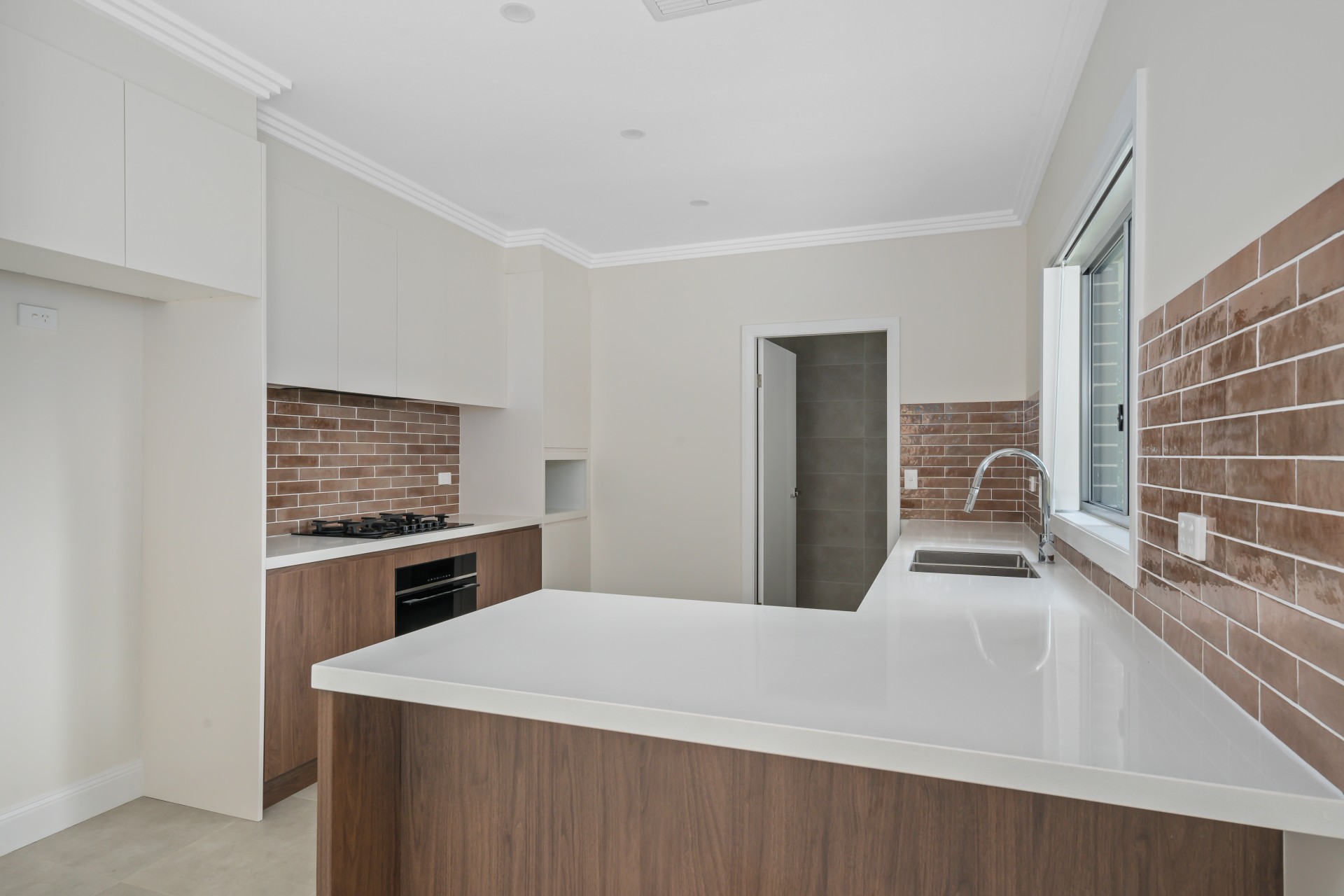 Modern kitchen with European appliances and 40mm stone bench tops.
