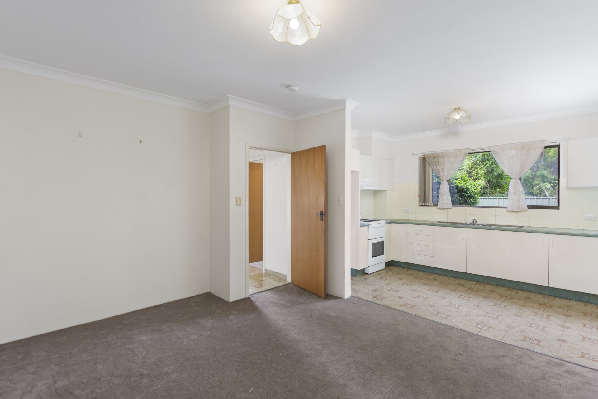 Newly laid carpet throughout the unit