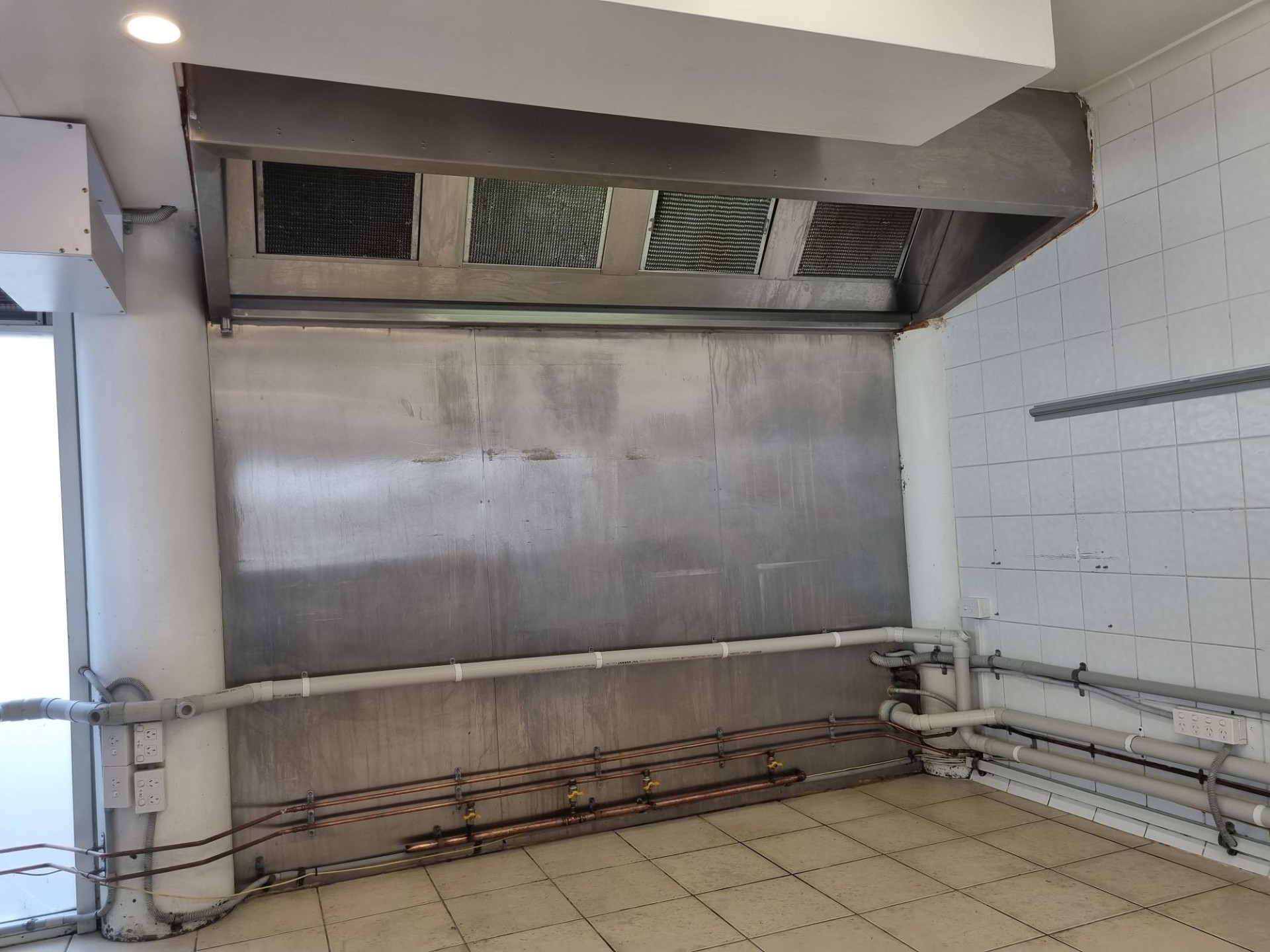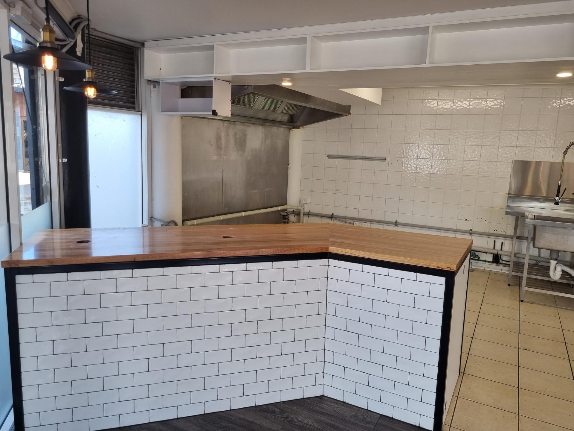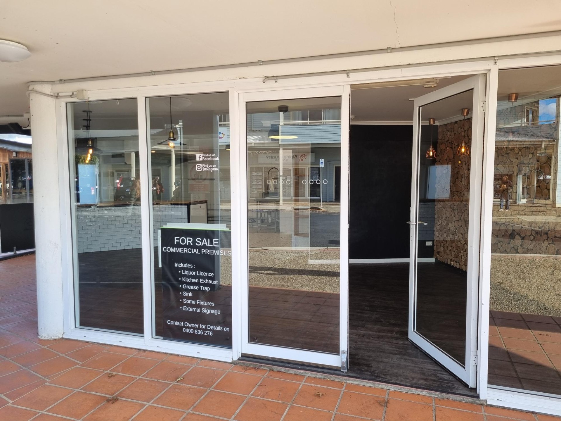 The hospitality infrastructure includes liquor licence, kitchen exhaust, grease trap, counter, some fixed shelving, external sign, storeroom and internal bathroom.