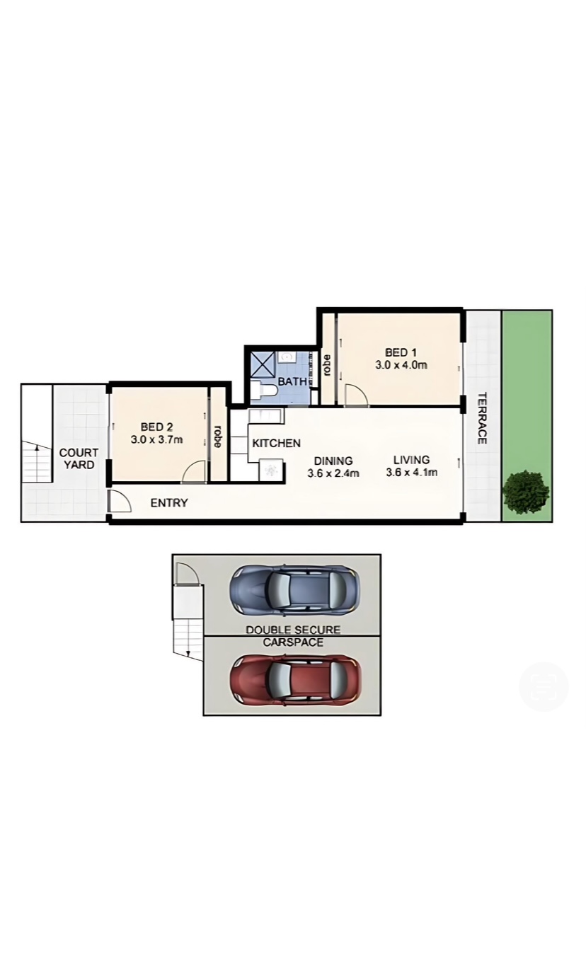 Unique Terrace Style Apartment With Private Front & Rear Courtyards Plus Double Car-space Garage