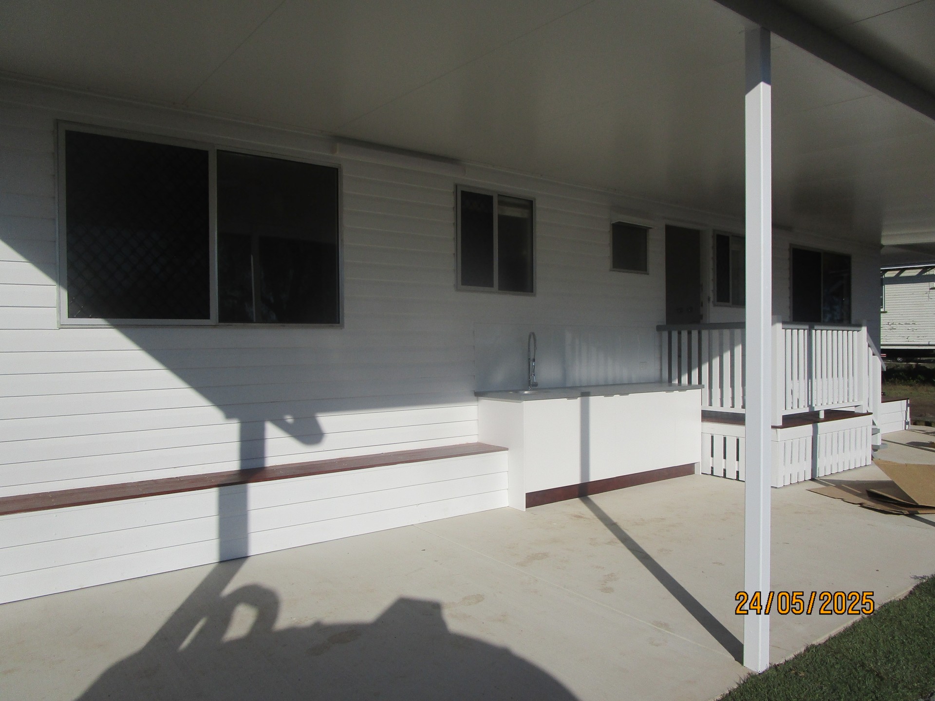 • Large covered and insulated rear patio - features dedicated bench, sink and built-in timber bench seating - perfect for entertaining