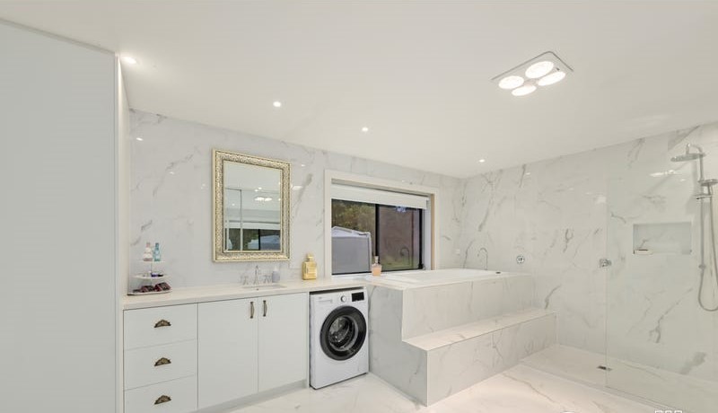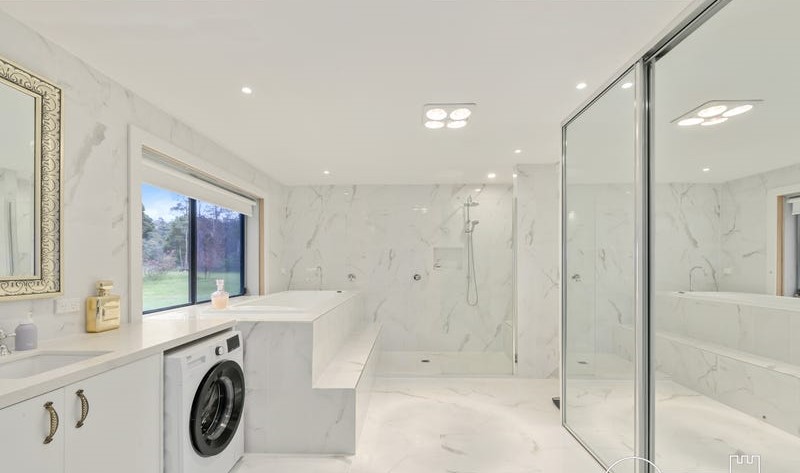 A gorgeous bathroom with an elevated bath, walk-in shower and crisp lines is only the start with a 250-liter electric hot water system.