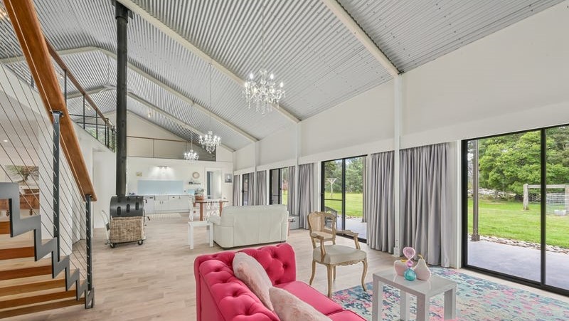 The lush green paddock leads to a building pad with an underground power connection where plans have previously been approved to develop a short-term stay cabin. Behind the 120m2 Australian Barn/garage offering high bays and the opportunity to connect to 3-phase power, is a second building pad for possible future development (S.T.C.A.)