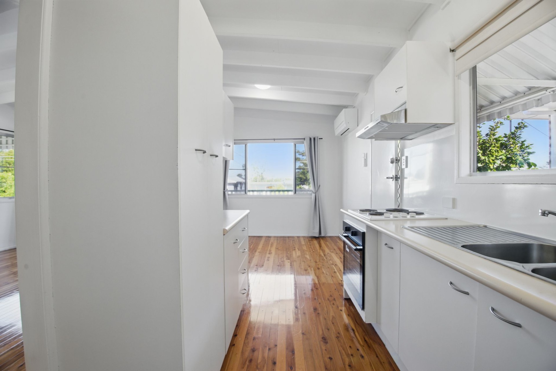 Upstairs, beautiful polished cypress floors complement a light, bright open plan living and dining area which flows into a functional kitchen with ample storage. The front balcony provides a wonderful outdoor space to enjoy your morning coffee and bay breezes. Three bedrooms (main with built-in wardrobe) are serviced by the main bathroom and separate toilet for added convenience.