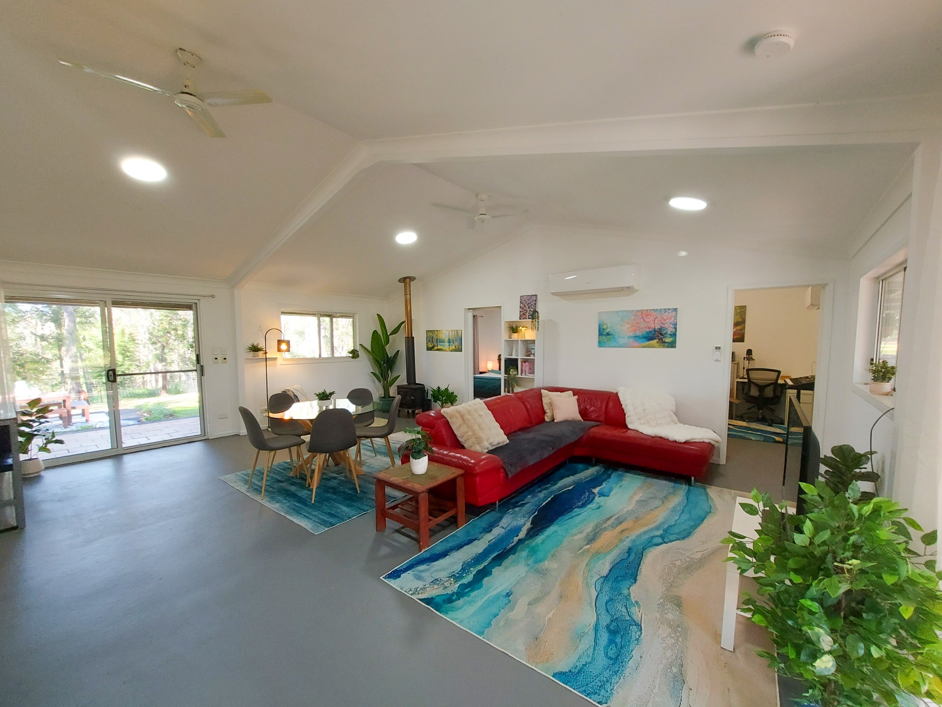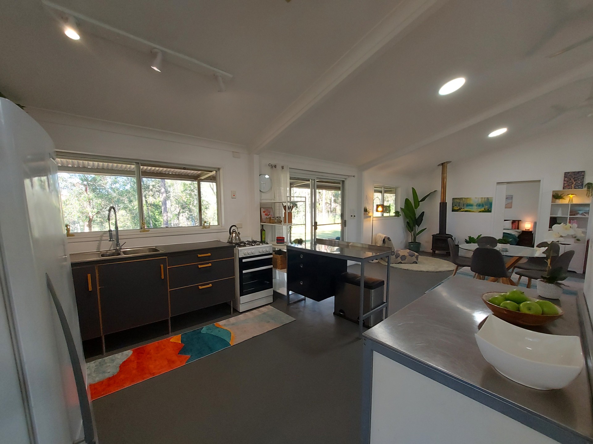 The main residence, freshly painted inside and out, has cathedral ceilings and a large open-plan central dining & lounge room. The Mitsubishi split system aircon supplies perfect climate control in the entire home. The kitchen features stainless steel benches, smooth pull-out drawers and generous storage space throughout. It has a brand-new gas oven, new high pull-out kitchen tap with spray function and under sink water filters. The spacious bathroom has an oversize sink, high-pressure shower, new tap and new toilet. The master bedroom is airconditioned and adjoins an additional office/bedroom, which can be converted into an ensuite. All bedrooms are sizeable with high ceilings and ceiling fans.