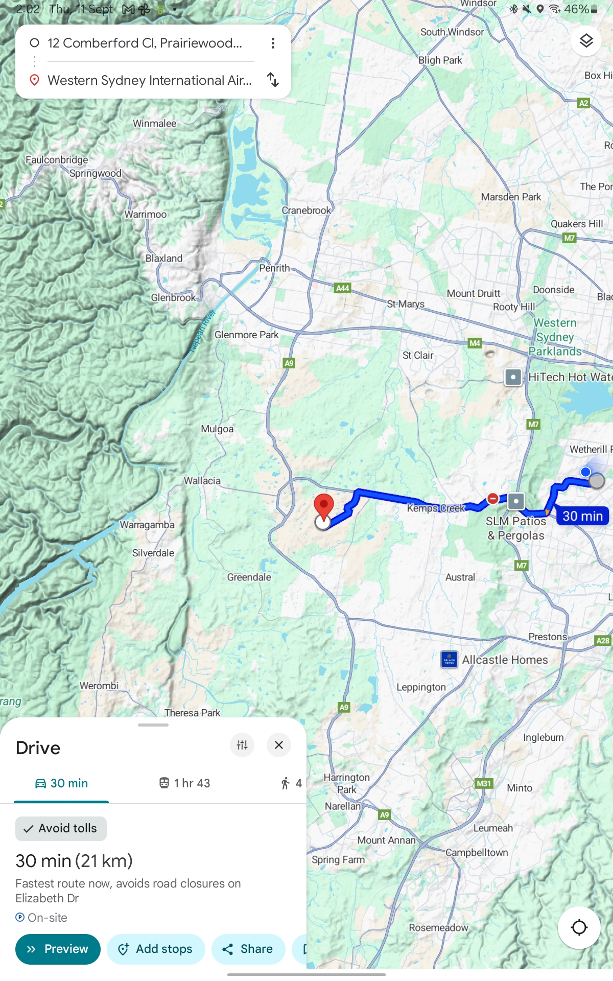 30 minutes from the house with the green door to the new Western Sydney Airport