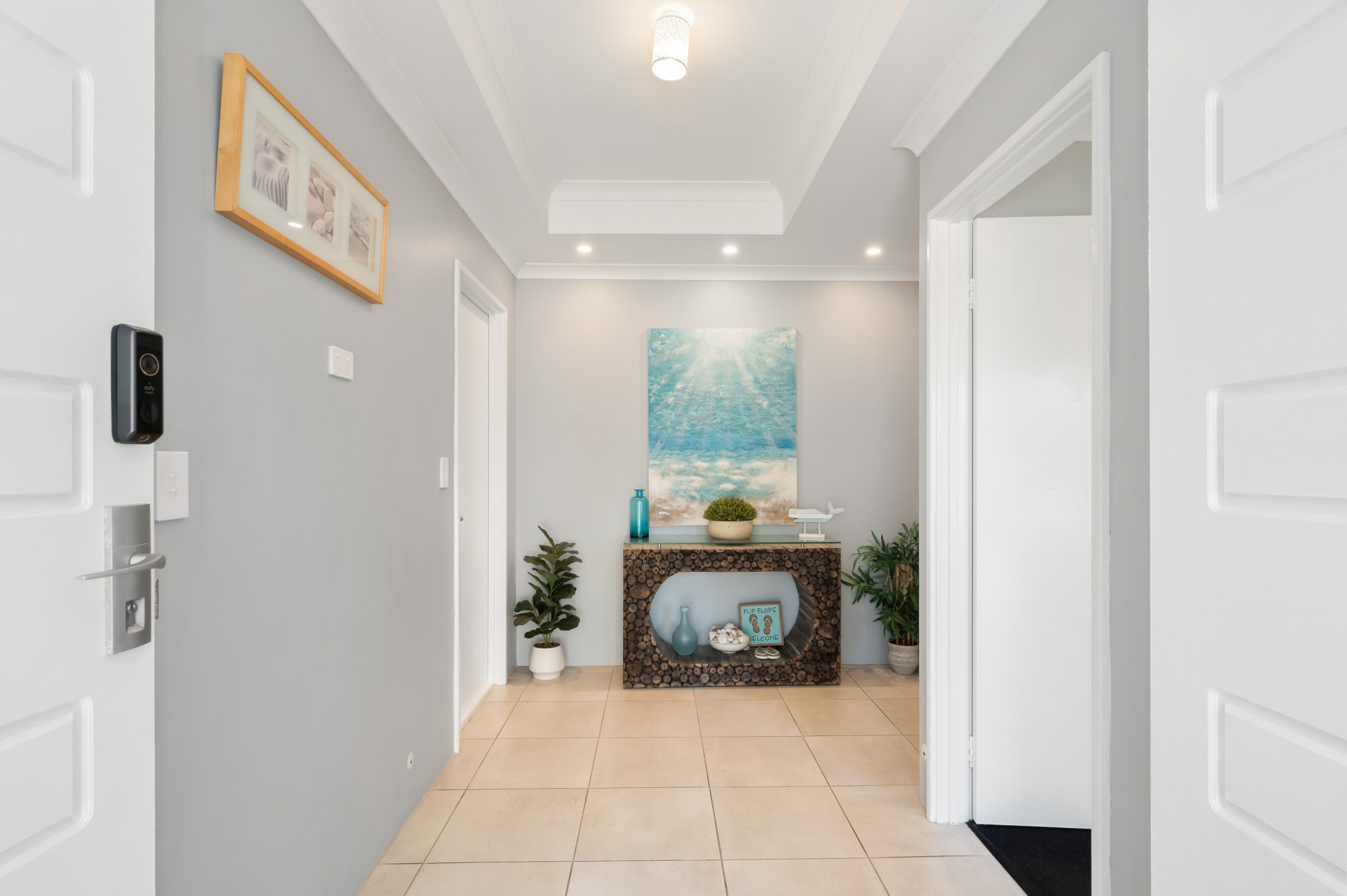 This beautiful family home features a resort-style outdoor area with a below-ground pool and a spa covered by a Bali hut. The spacious outdoor areas provide enough room for trampolines, large outdoor seating, and fantastic entertaining.