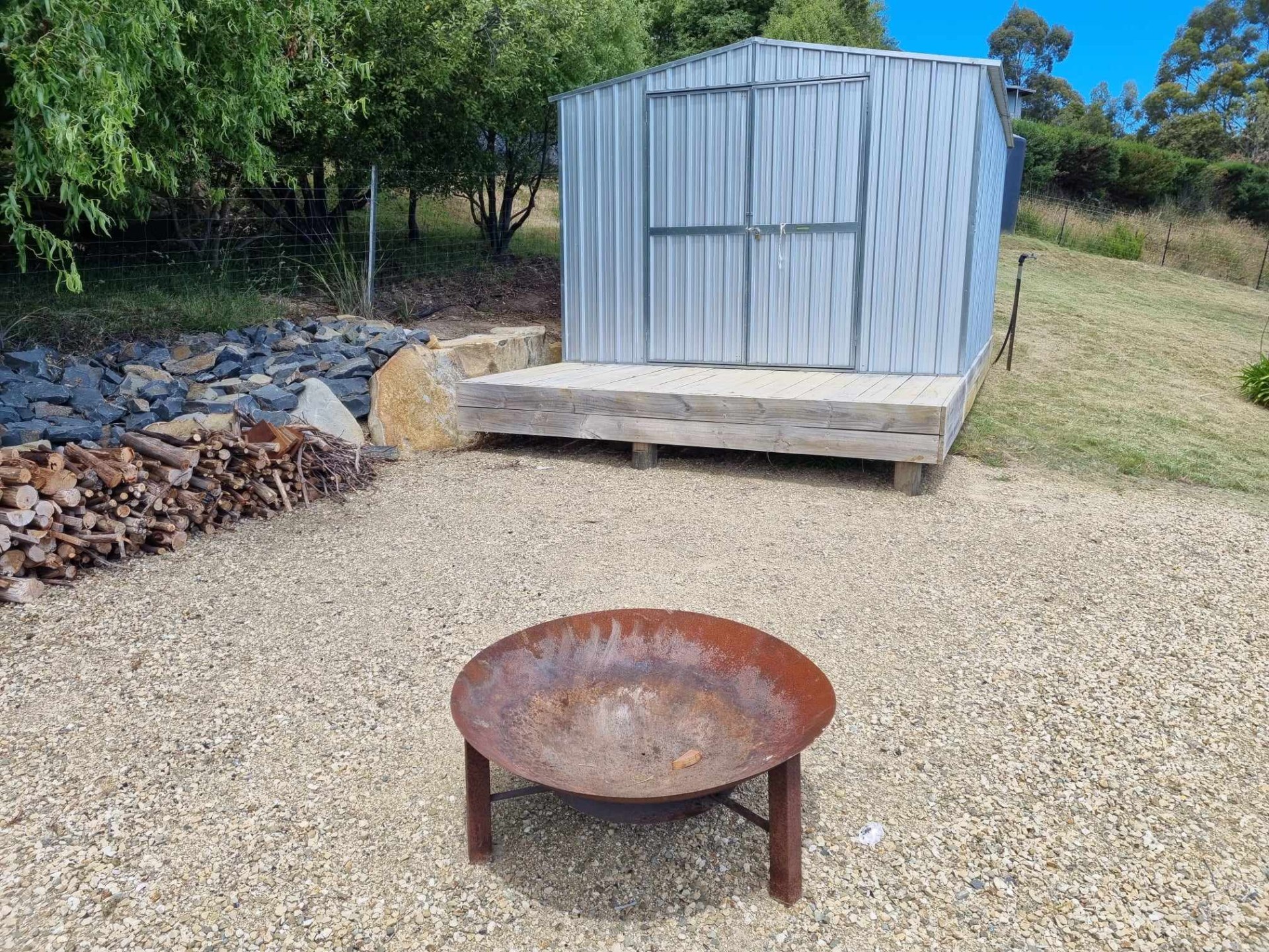With recently connected power, a 10,000 litre water tank, shed and privately screened BBQ area, this site is ready and set up for comfortable camping.