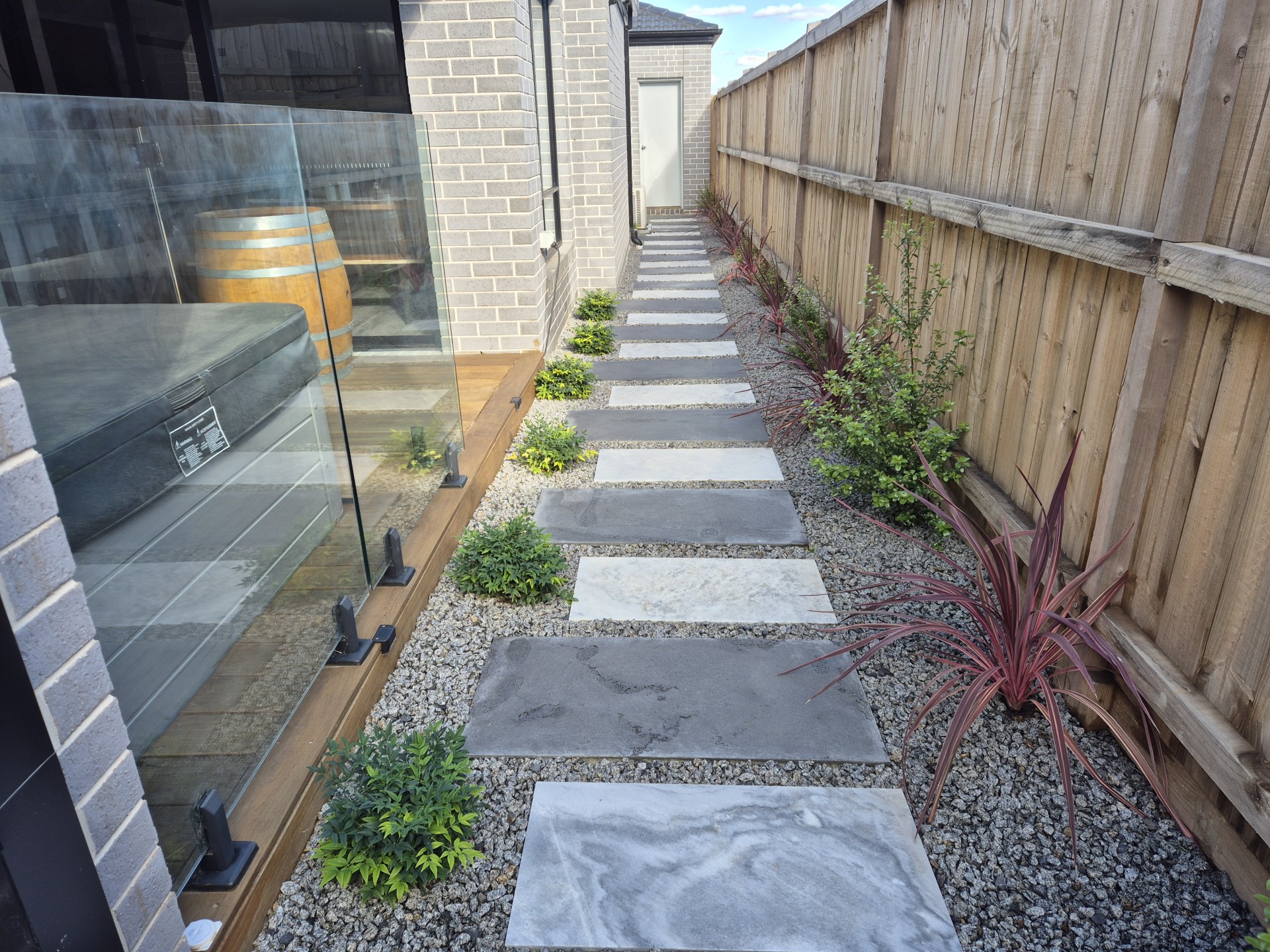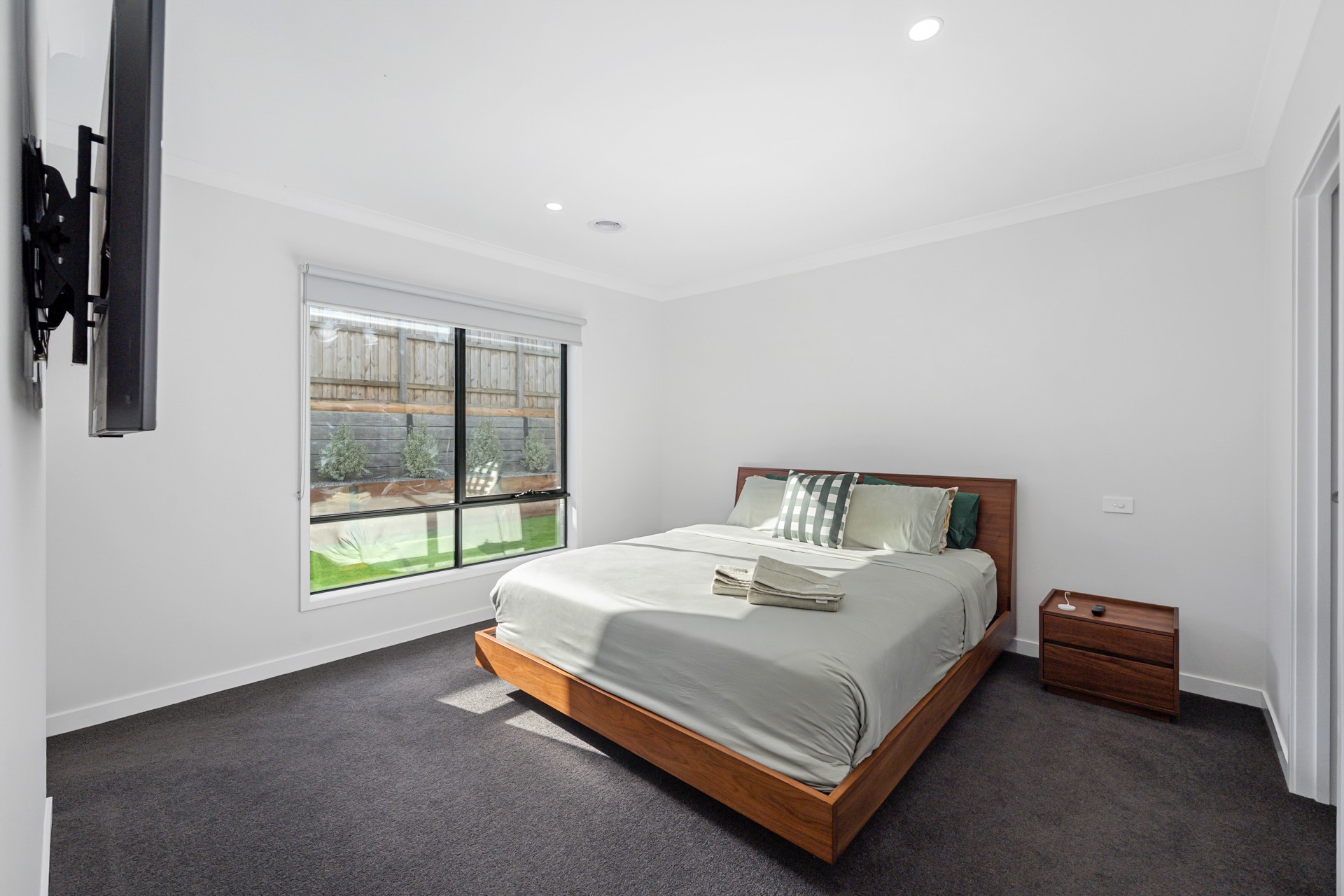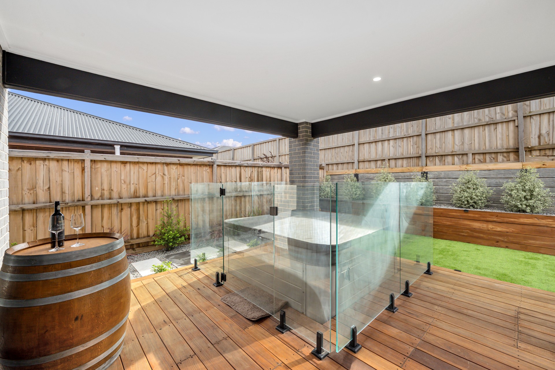 Step outside to a modest yet well-manicured landscaped garden area, a private alfresco, aboveground firepit and deck ready for barbecues, morning coffees, or relaxed evenings under the stars.