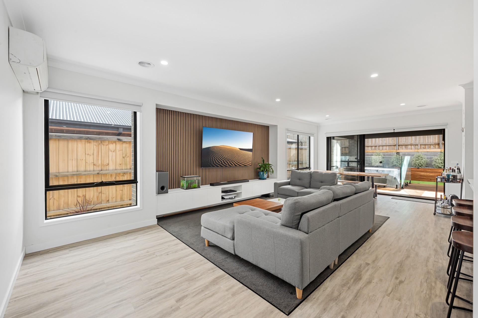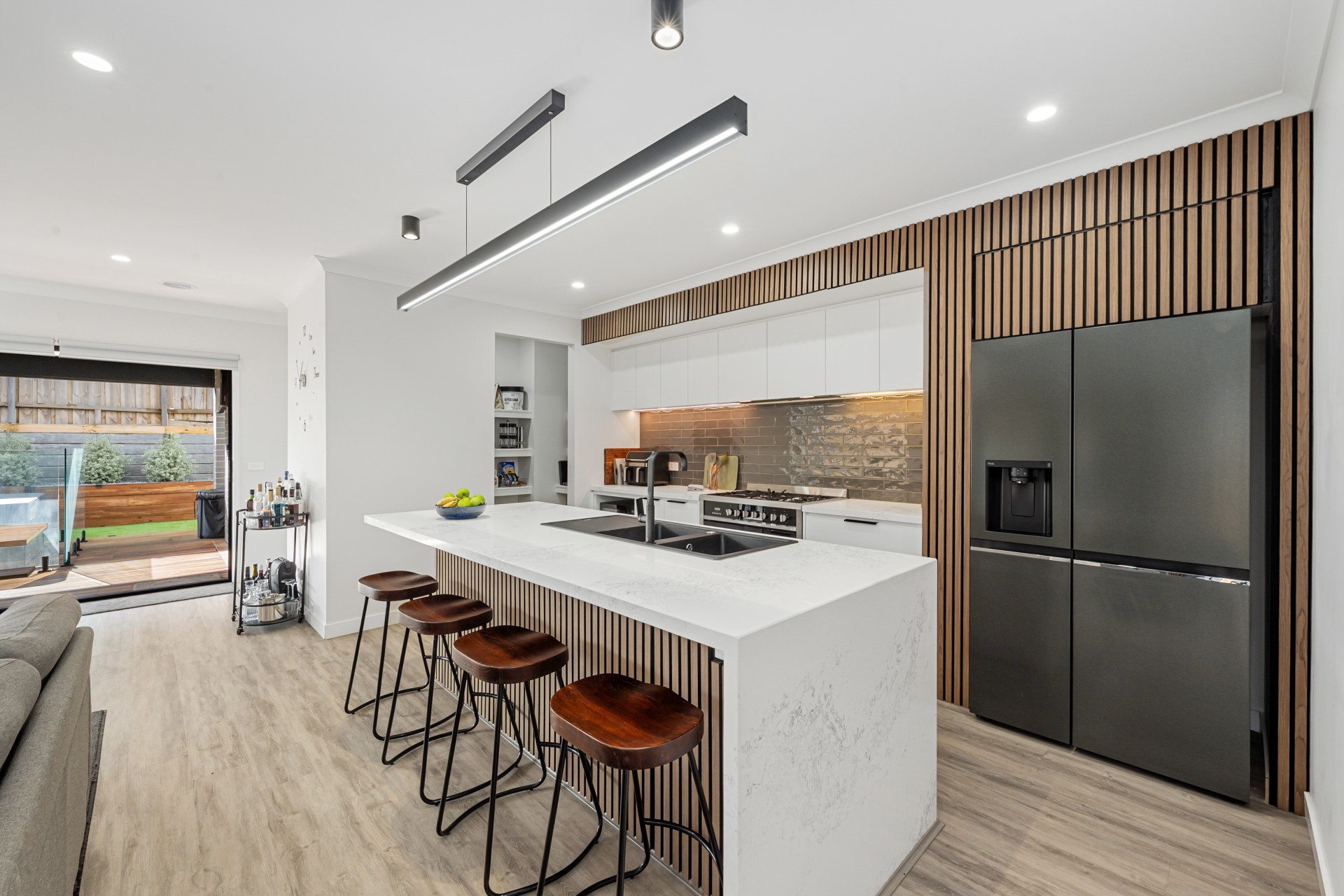 The heart of the home is the show-stopping kitchen-light-filled and beautifully appointed with timber-look and modern cabinetry, a 900mm freestanding oven, dishwasher, plumbed fridge space, and elegant stone benchtops. A walk-in butlers pantry adds practicality, while the open-plan design seamlessly connects the kitchen to the family and meals area. Step outside to a covered alfresco featuring an inbuilt spa-perfect for summer entertaining or keeping warm on them cold winter nights.