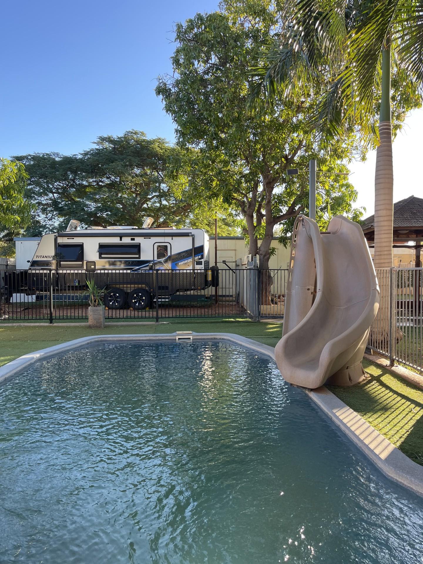 • Sparkling swimming pool with fun slide and new pool pump