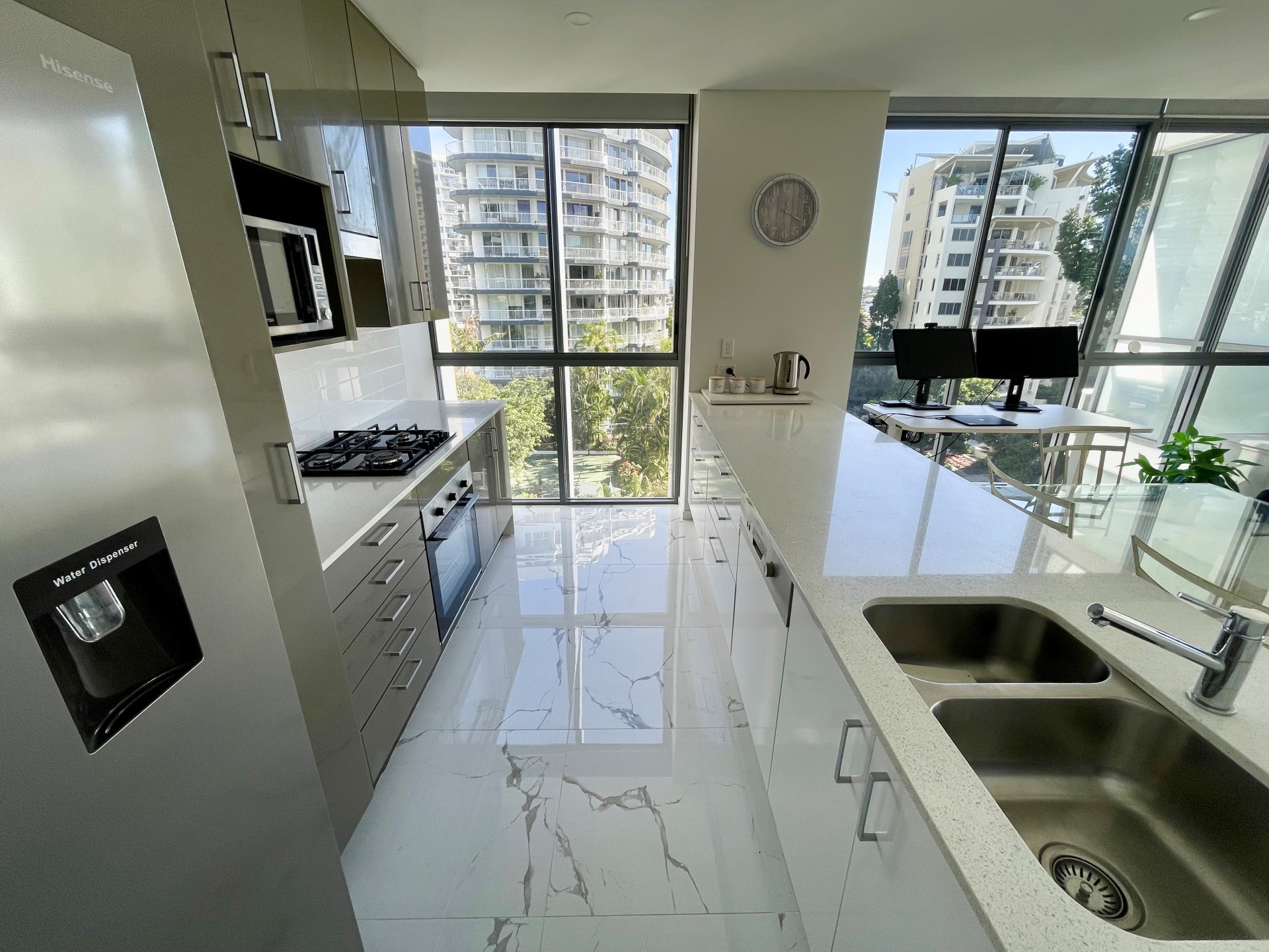 Step inside apartment 702, and you will be greeted by an open plan kitchen, dining, and living room that seamlessly flows out to a generous 22-square-metre North/West facing balcony. Feel the refreshing breeze and soak in the stunning views through the floor-to-ceiling windows adorning the living room and bedrooms. Stay comfortable year-round with split system air conditioning units thoughtfully placed in the living area and both bedrooms.