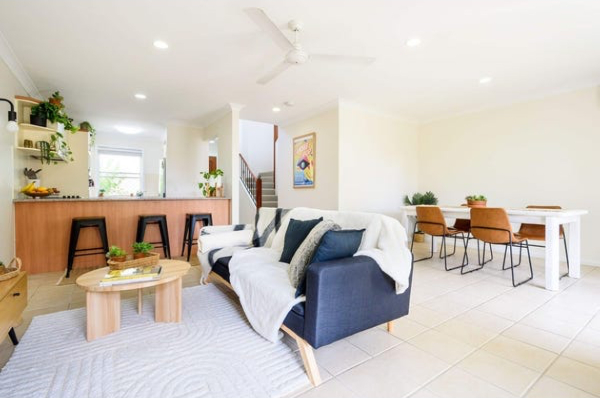 The home's rear fully fenced placement ensures privacy and a tranquil living environment, with grassy backyard, undercover patio area and edible garden including pineapple, spinach, cauliflower, avocado tree, rosemary, basil, parsley, mint and more. Complex allows pets.