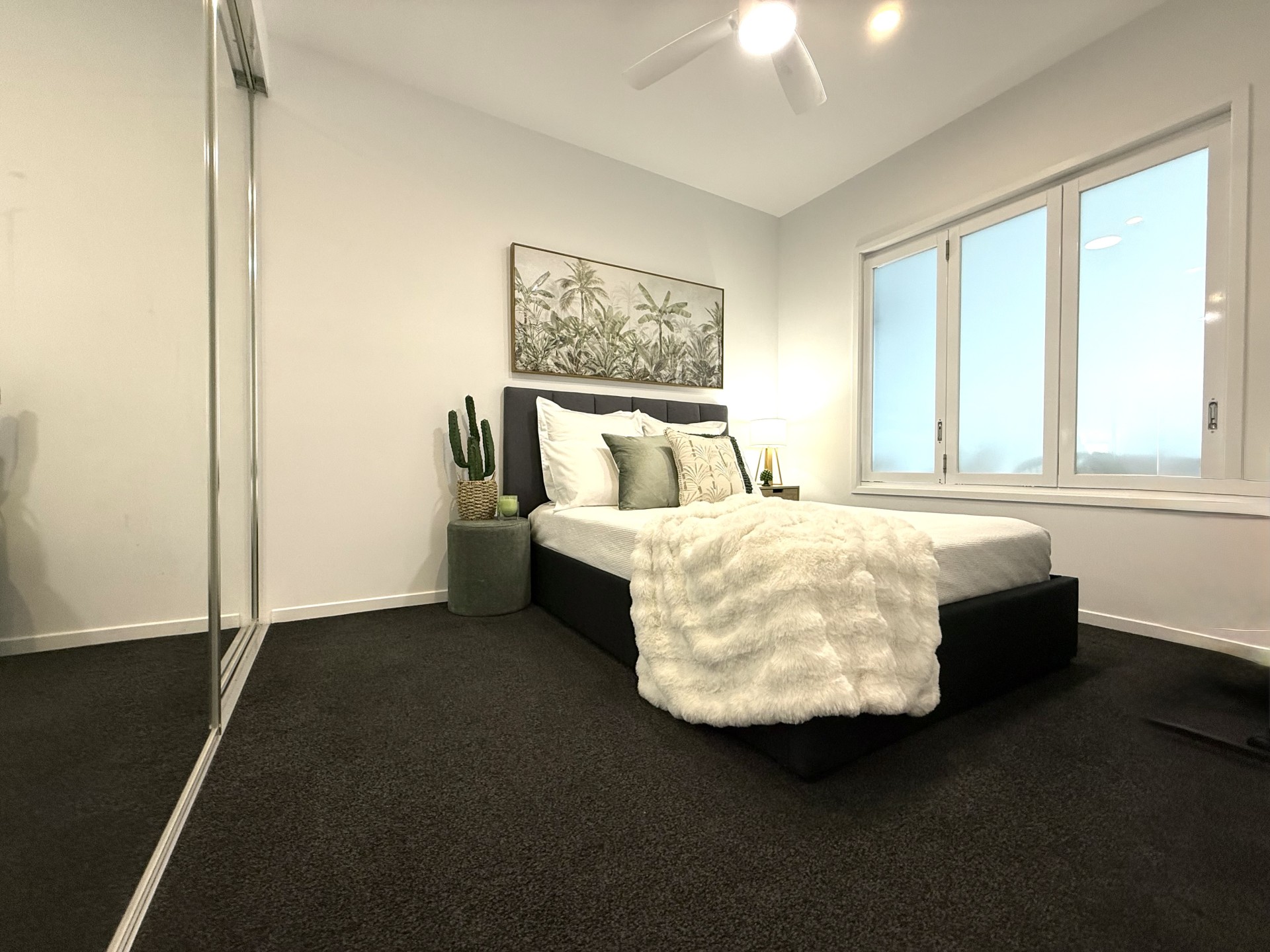 Another queen-sized bedroom with floor to ceiling mirrored wardrobe provides ample space.