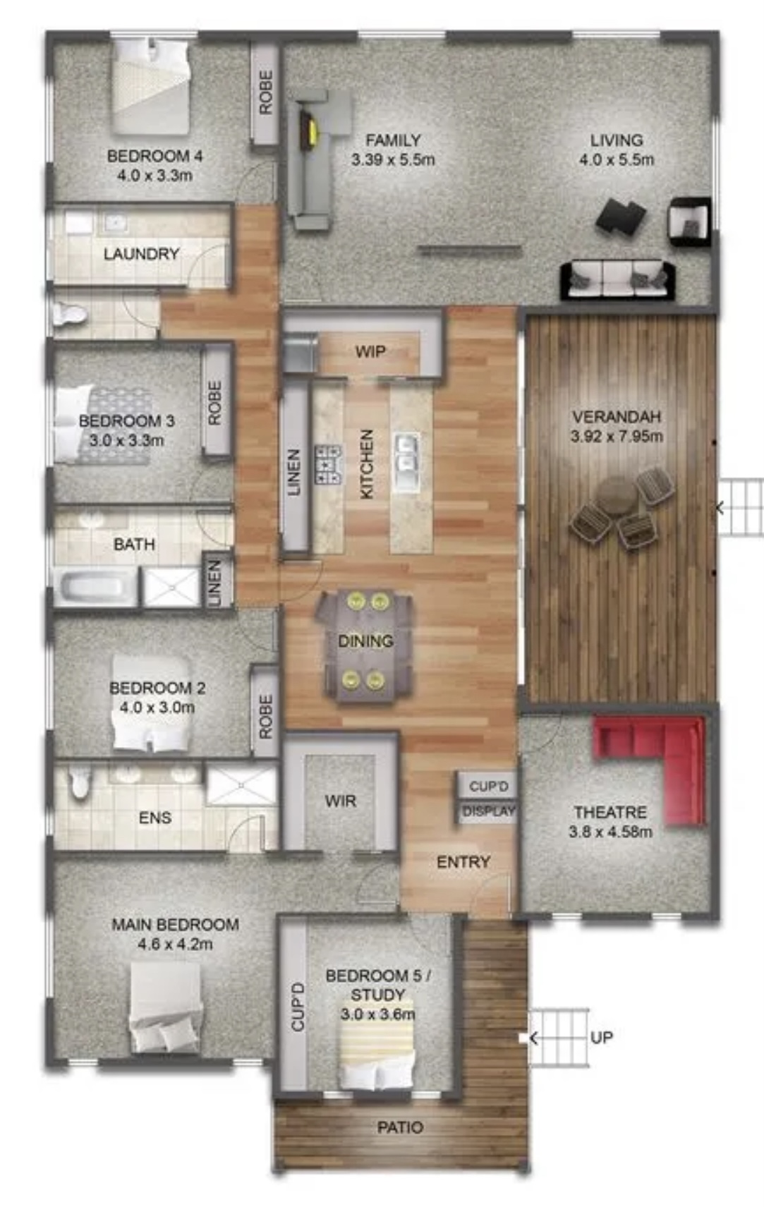 * Quality hardwood decking at entrance and entertaining area