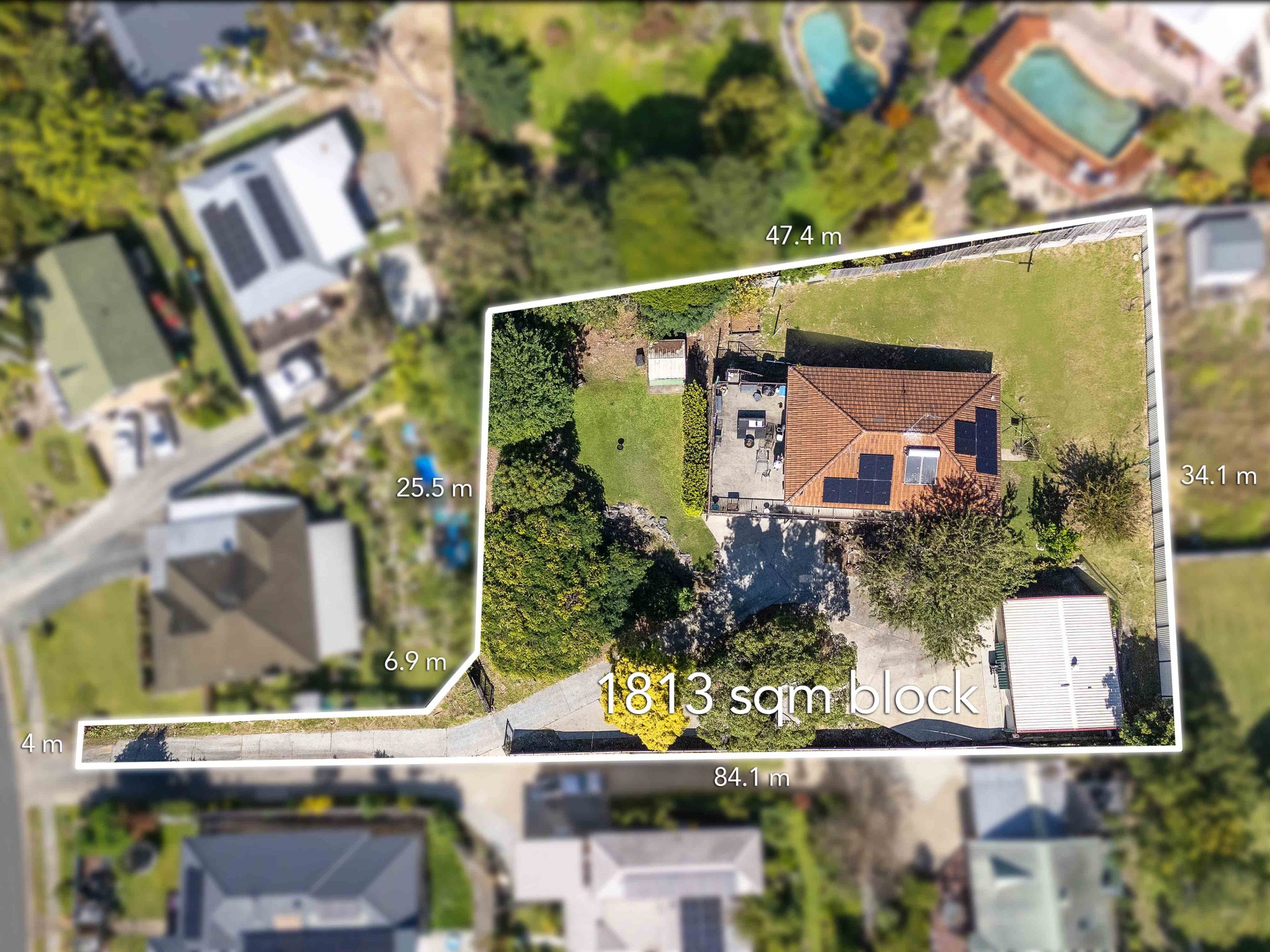 This huge block (1813 sq.m) has plenty of room for a pool and gardens.