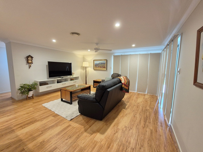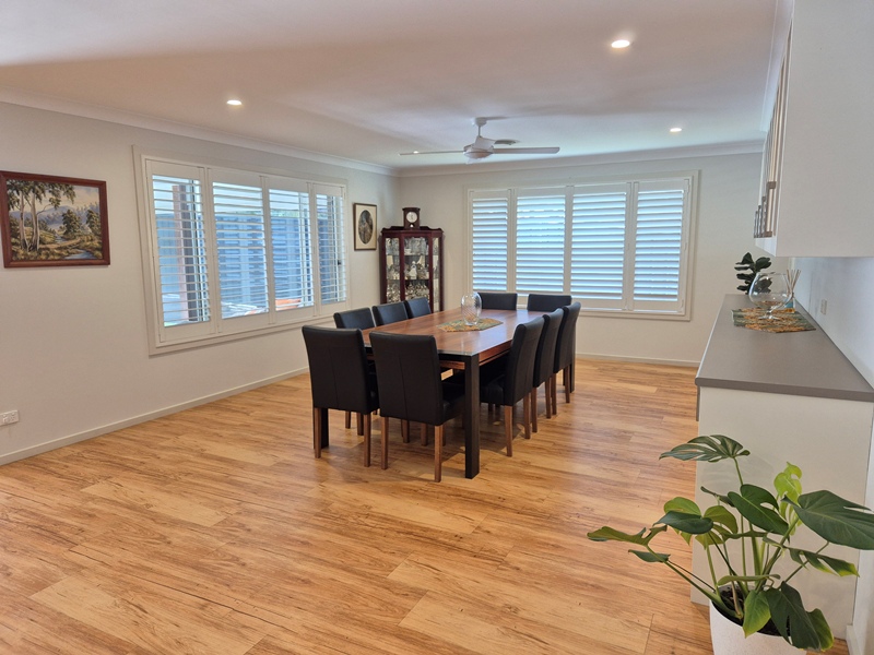 For your comfort the added benefit of ceiling fans and a quality Daikin ducted air conditioning system throughout the home for all year round climate control. There are low maintenance easy care vinyl plank flooring in the living and kitchen areas and carpets to the bedrooms. The whole house has been fitted with plantation shutters for privacy and extra insulation.