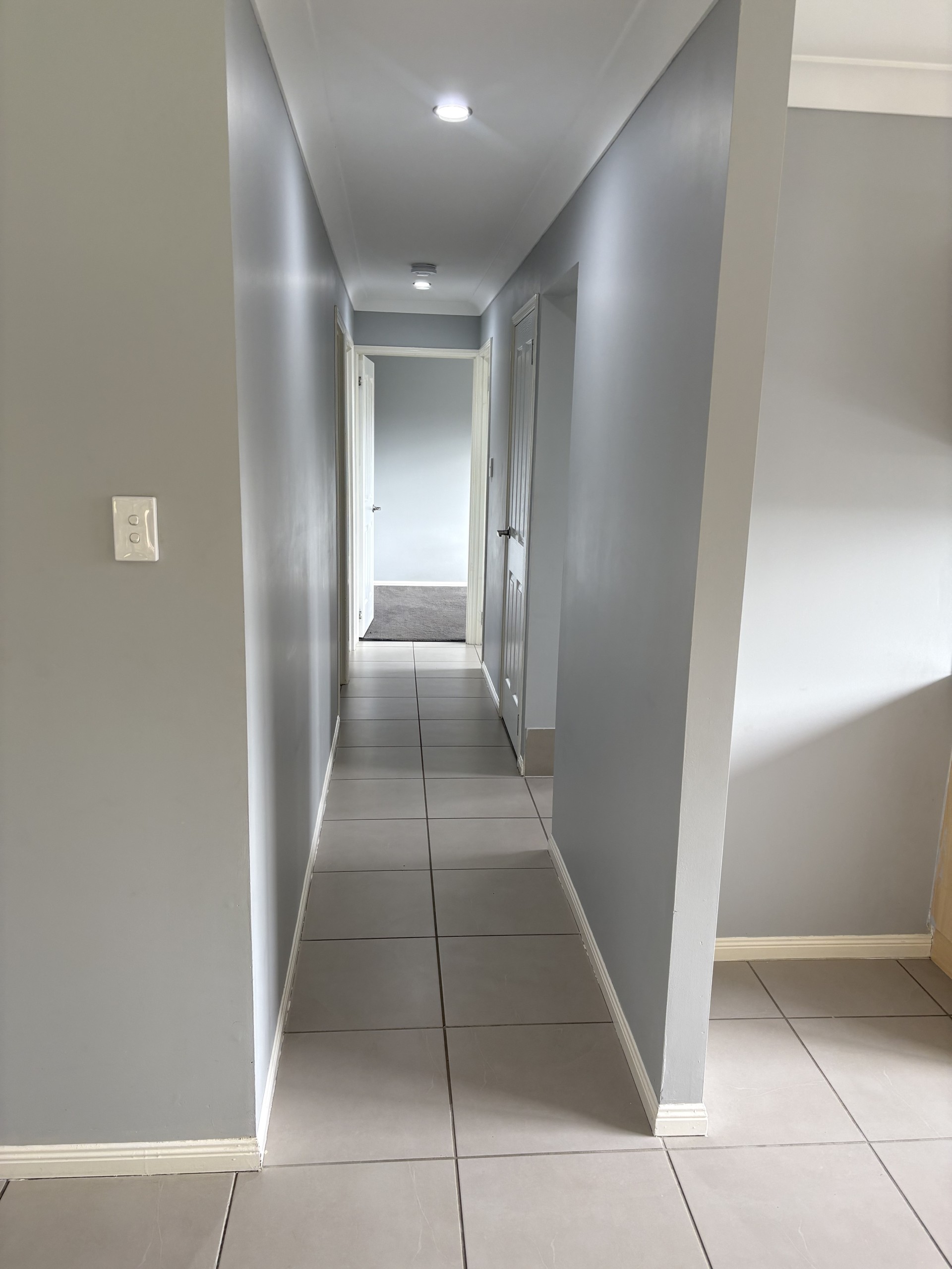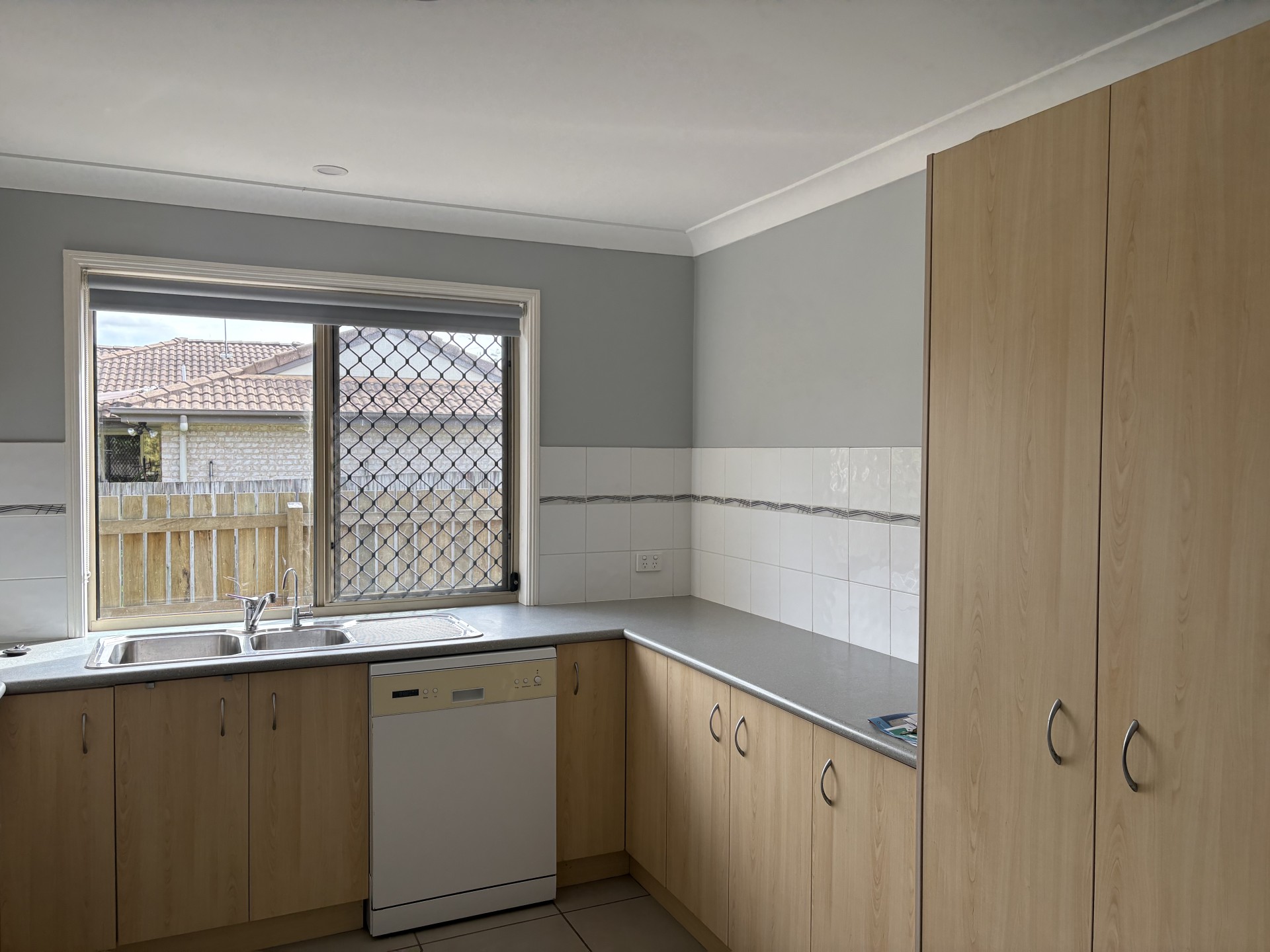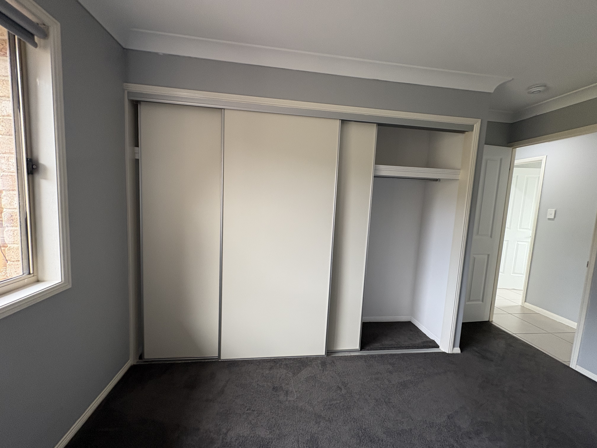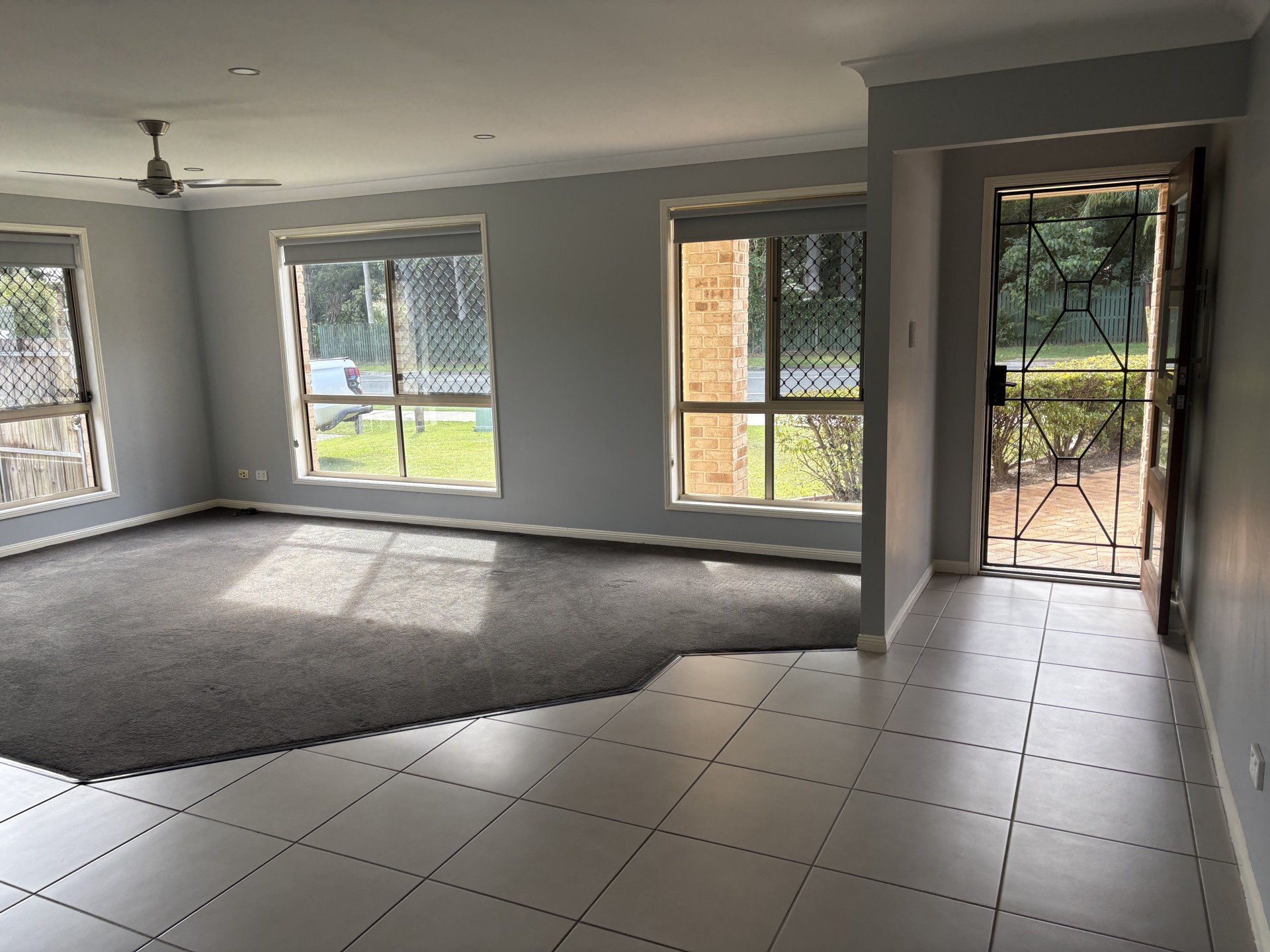 The 2 other bedrooms have the same plush carpet, second bedroom also has a large built-in 3-door wardrobe. The house has been recently repainted in a soft grey with block-out roller blinds and fans throughout.