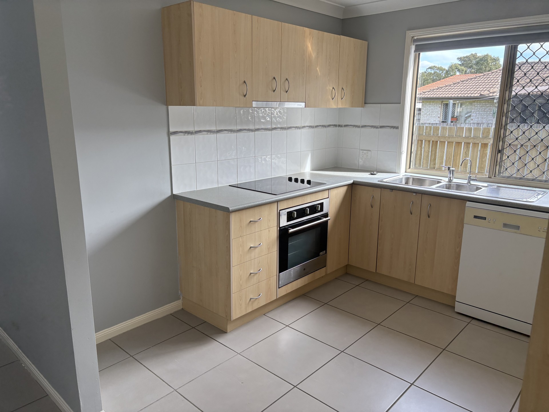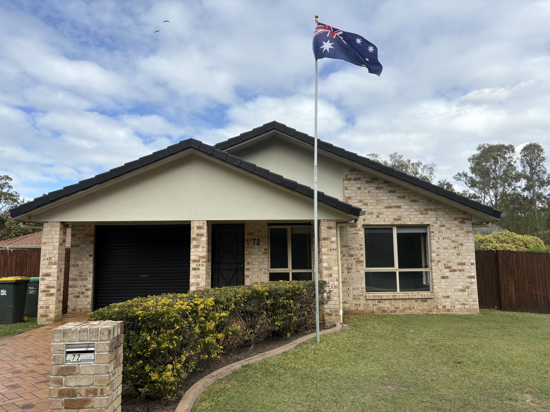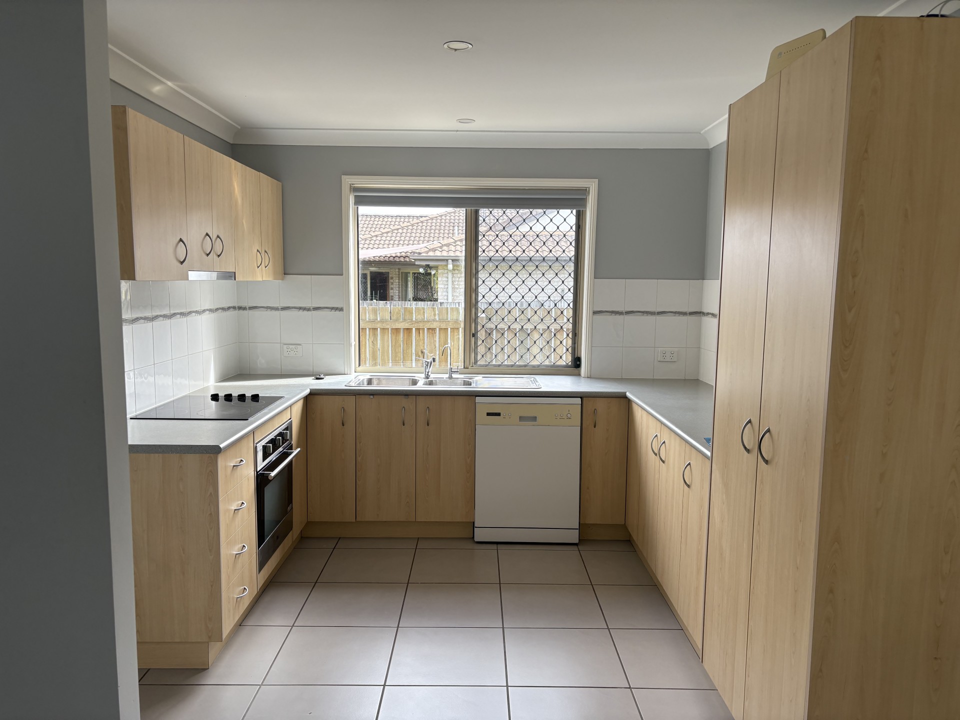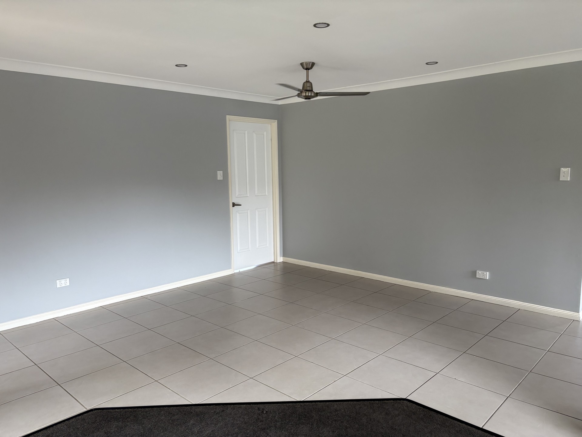 The 2 other bedrooms have the same plush carpet, second bedroom also has a large built-in 3-door wardrobe. The house has been recently repainted in a soft grey with block-out roller blinds and fans throughout.