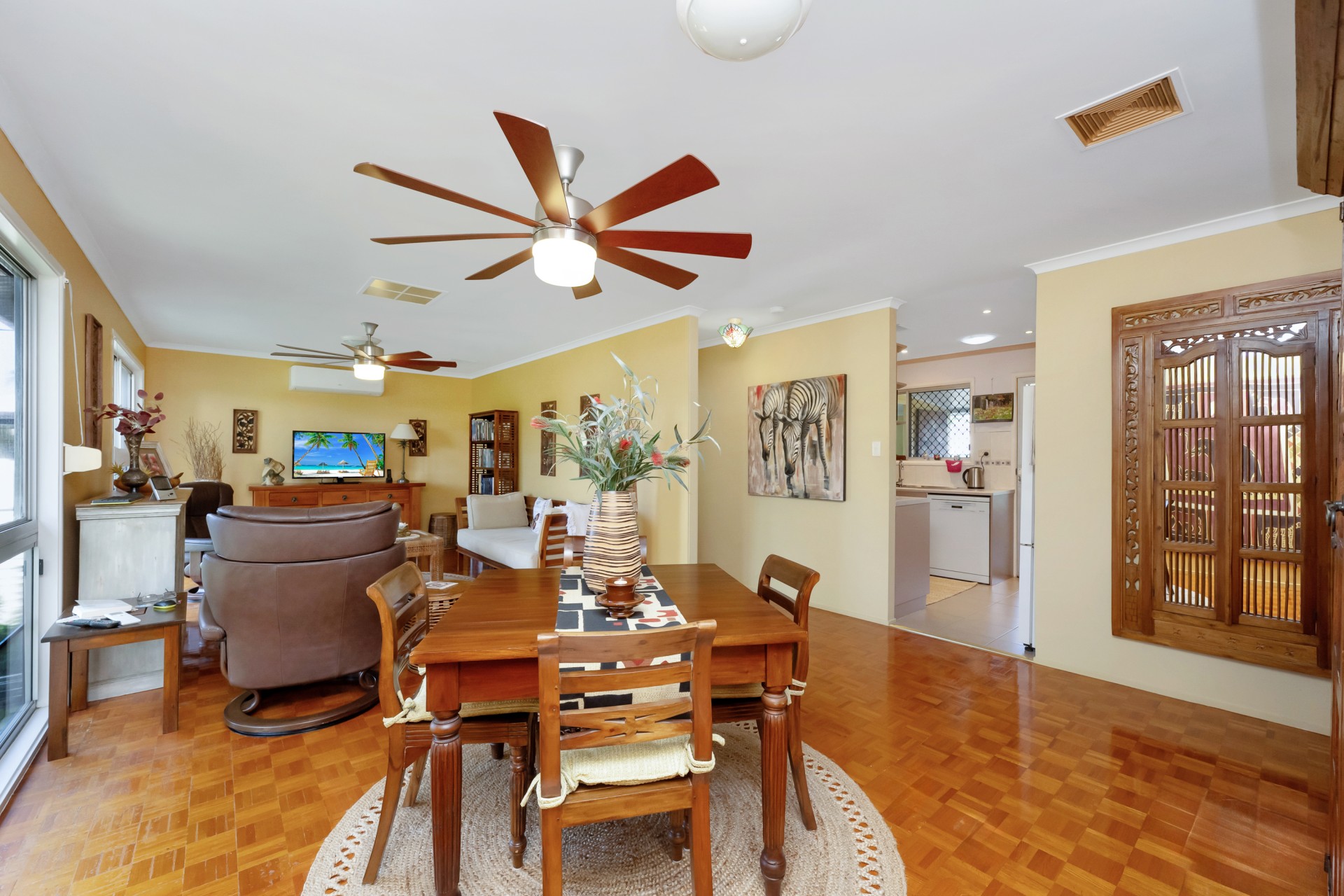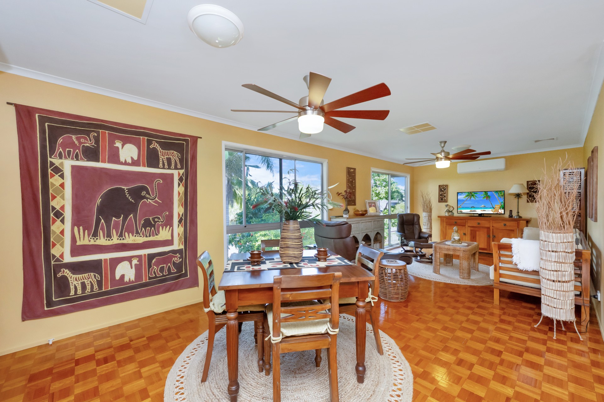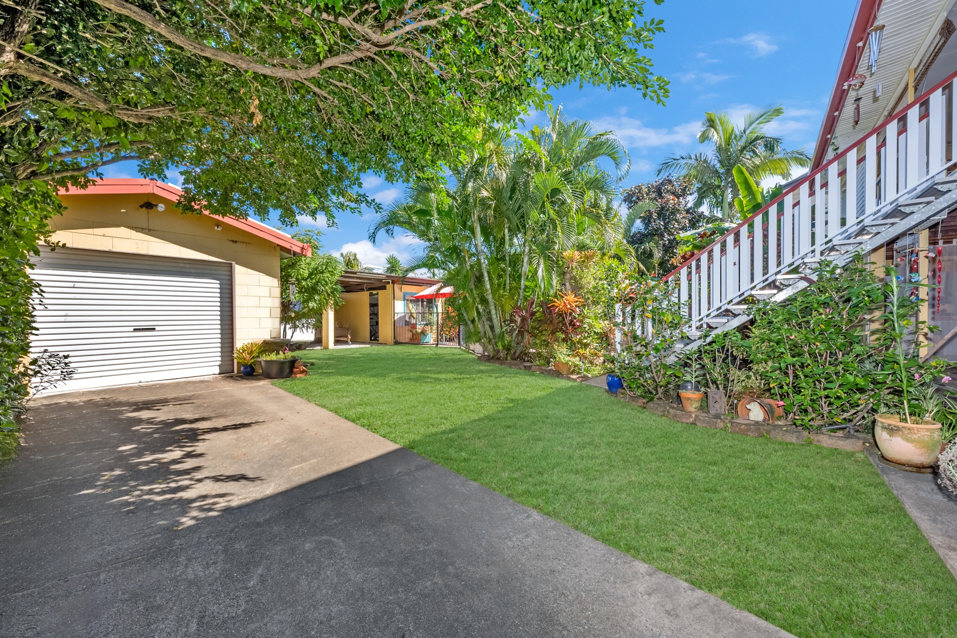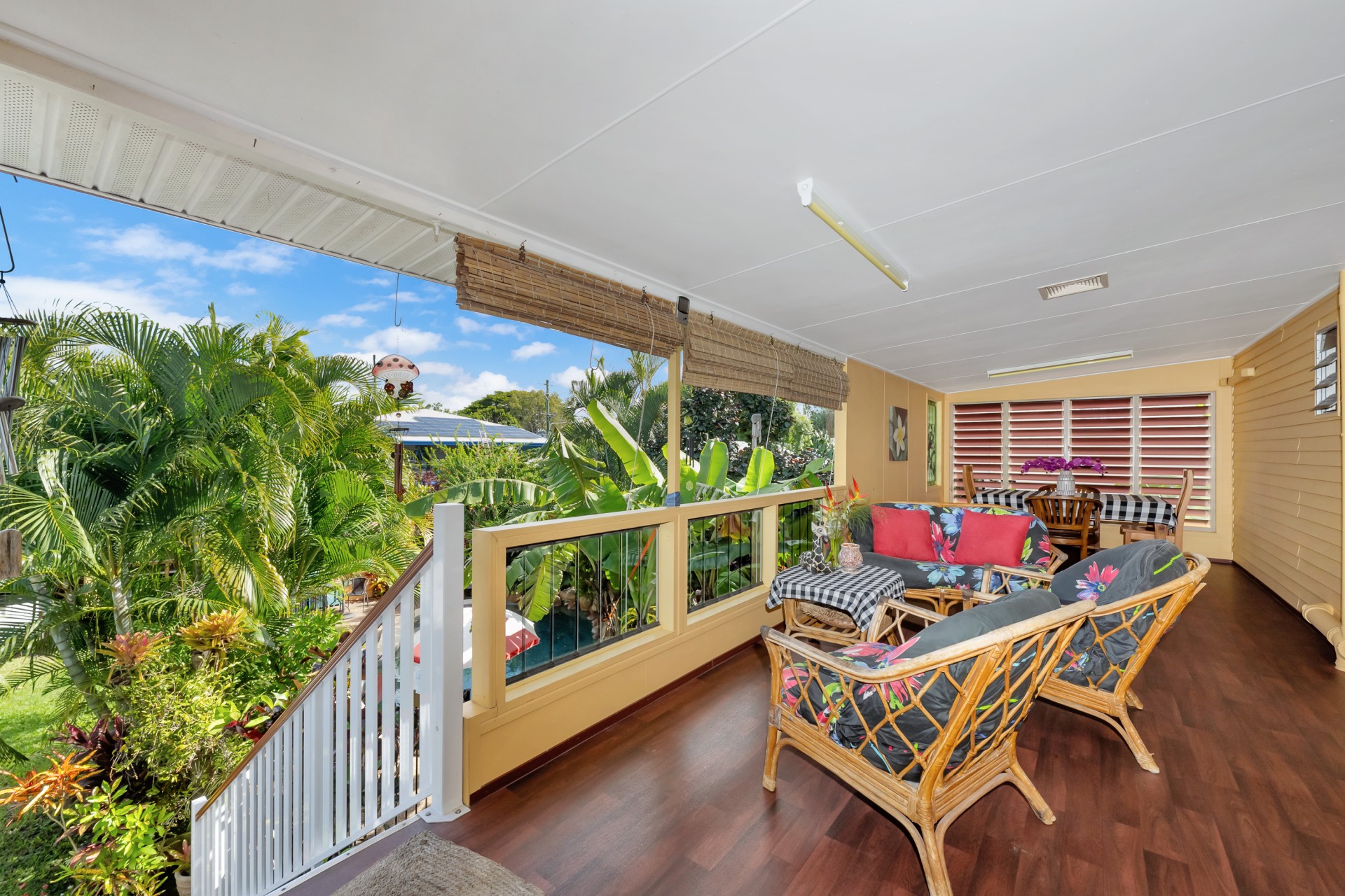 The tranquil effect of the surrounding tropical garden makes relaxing on the beautiful sheltered balcony upstairs and the covered verandah on the lower level especially energising.