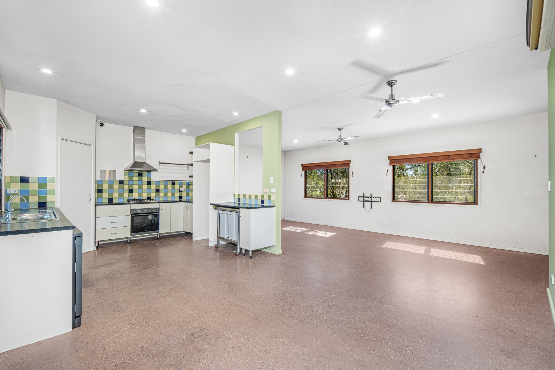 Open-plan living connecting lounge, dining, kitchen and back verandah areas.