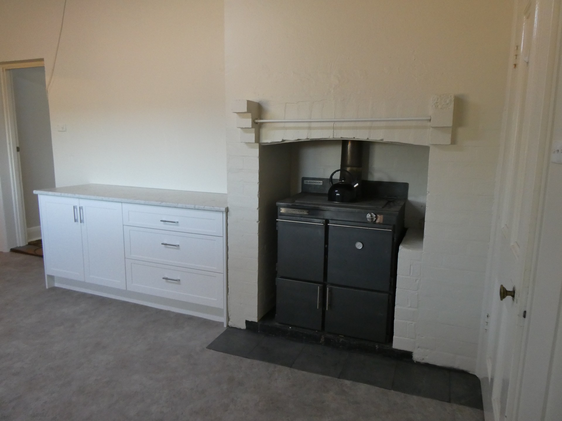 The kitchen has a wood stove for cooking and heating and a split system air conditioner plus there is wood fire in the loungeroom.