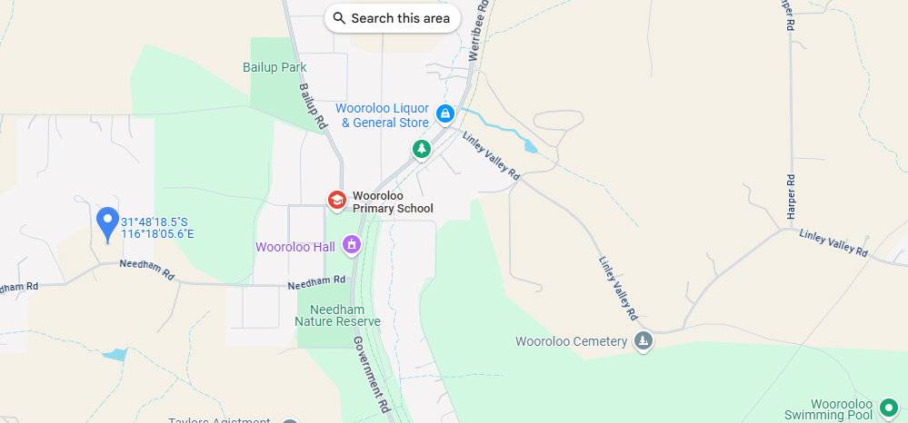 • 1.5km from Wooroloo townsite which offers a primary school, post office, general store and community hall. There is a bus service operating between Wooroloo and the high school located in neighbouring Mount Helena.