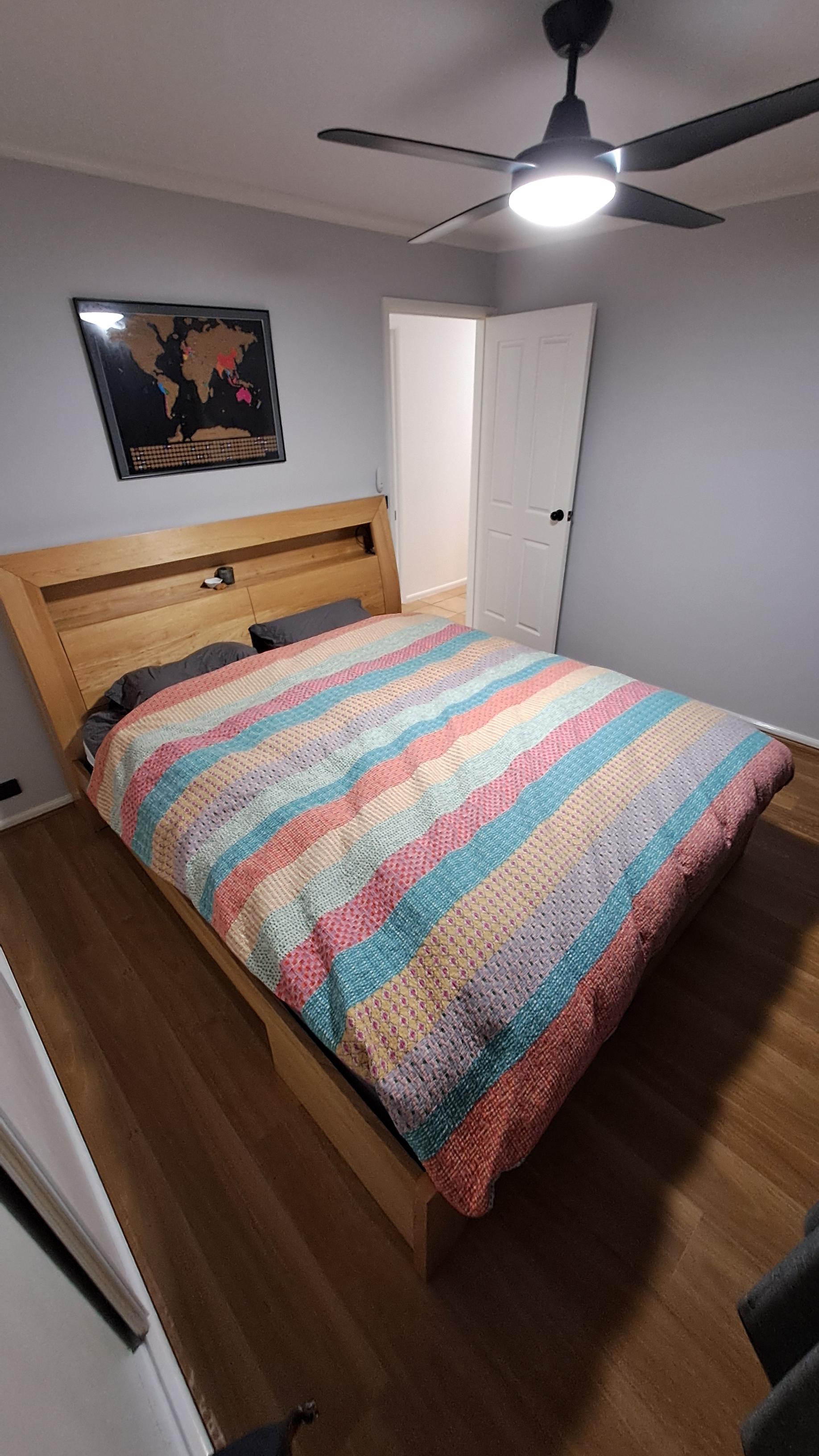Climate control includes ducted gas heating throughout and new ceiling fans installed the living room and bedrooms.