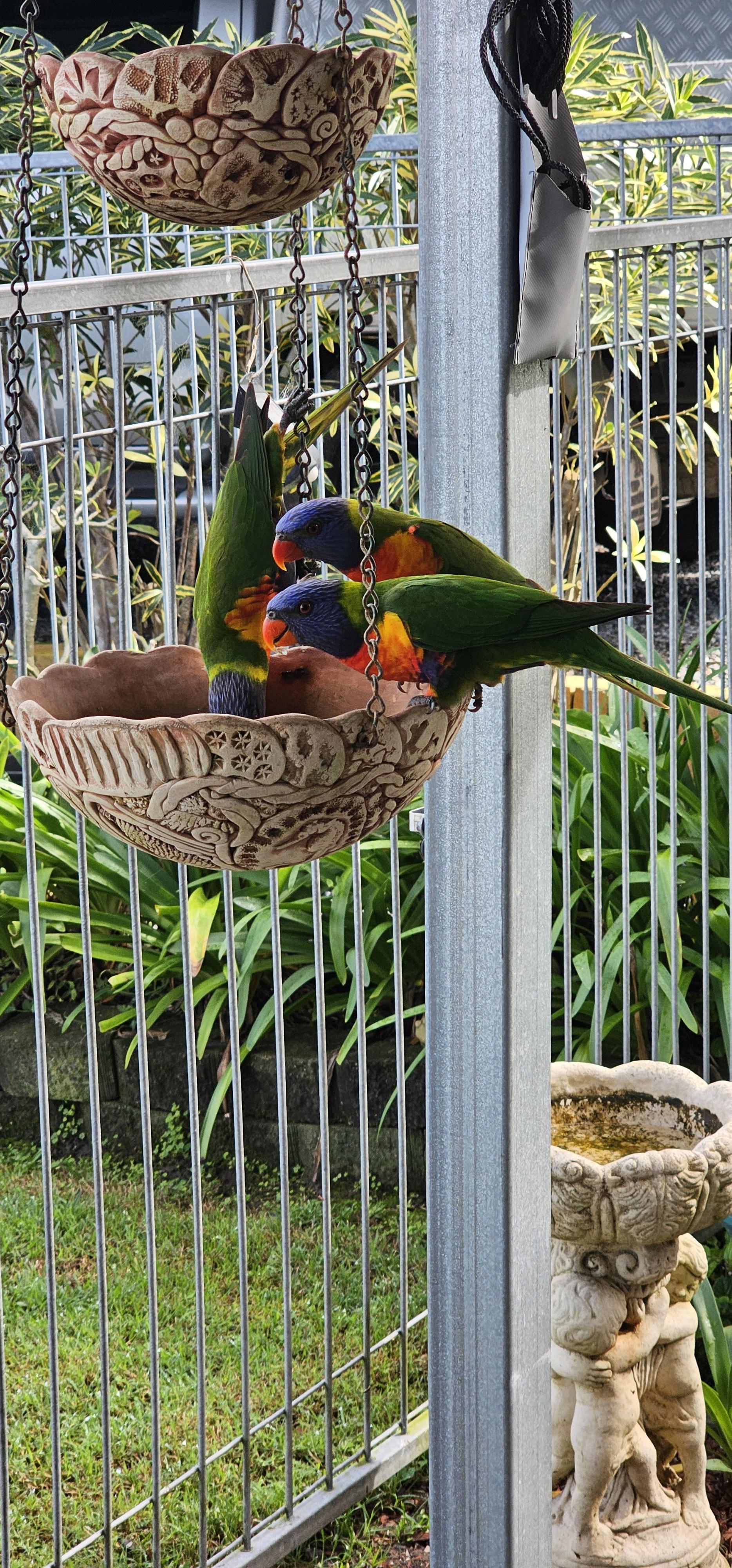 King Parrots and Lorikeets which can be hand fed, plus Black Cockatoos, Corellas, Doves, Kookaburras, Peacocks, Honey Eaters and more.