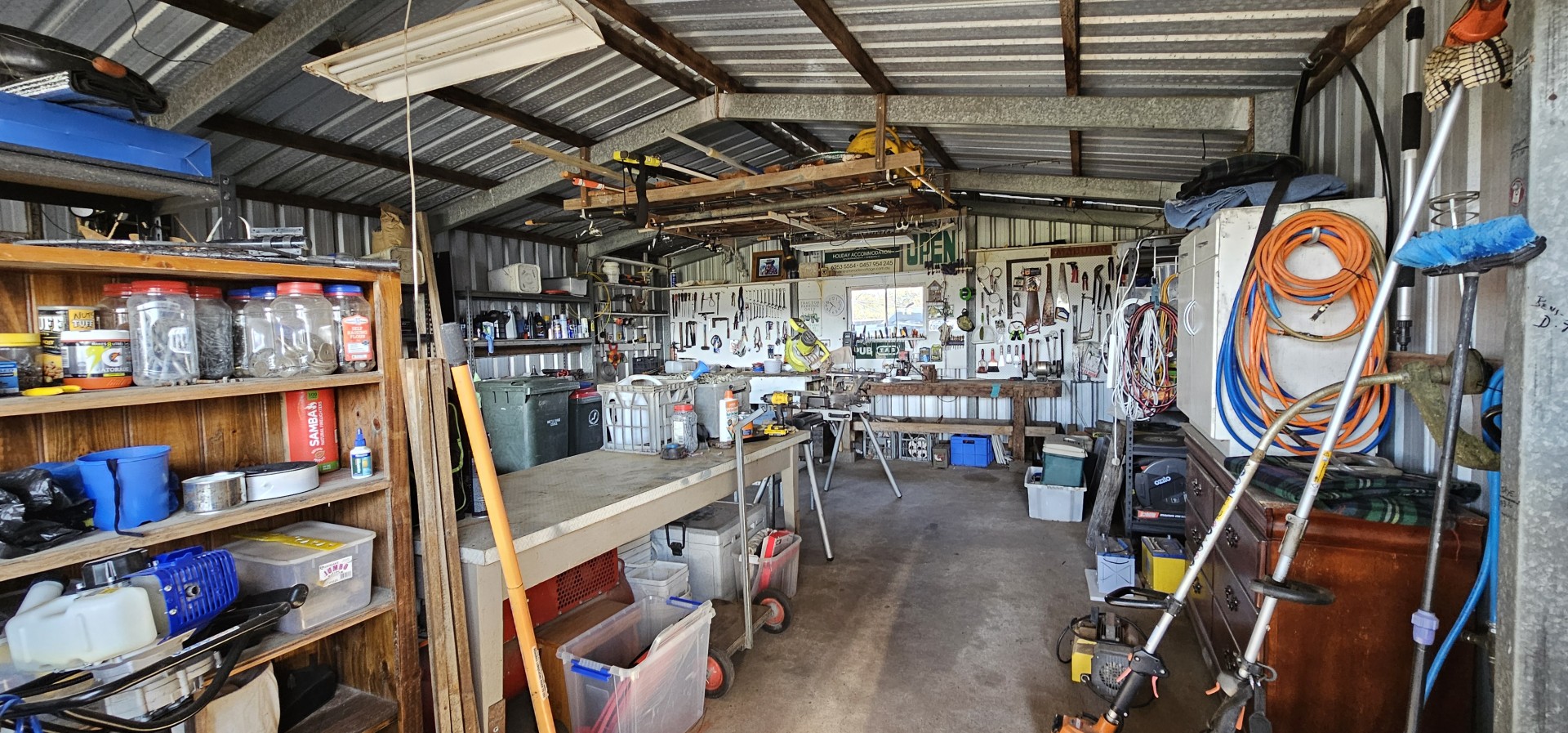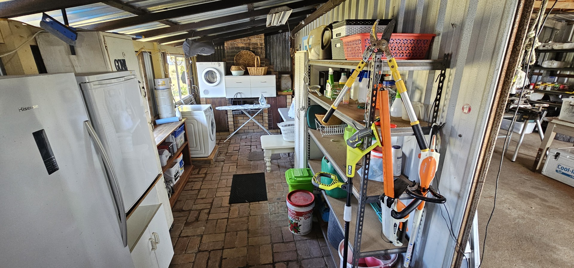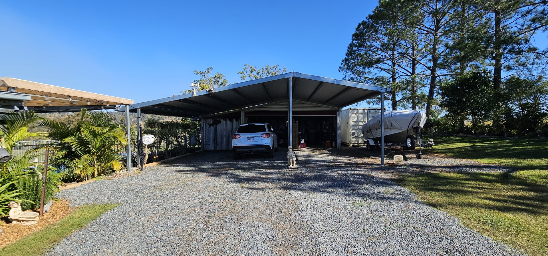 At the front of the garage is an 8.5 X 7.5 metre 3 bay carport. Extra storage is supplied by a near new 20ft shipping container plus mower shed and wood shed.