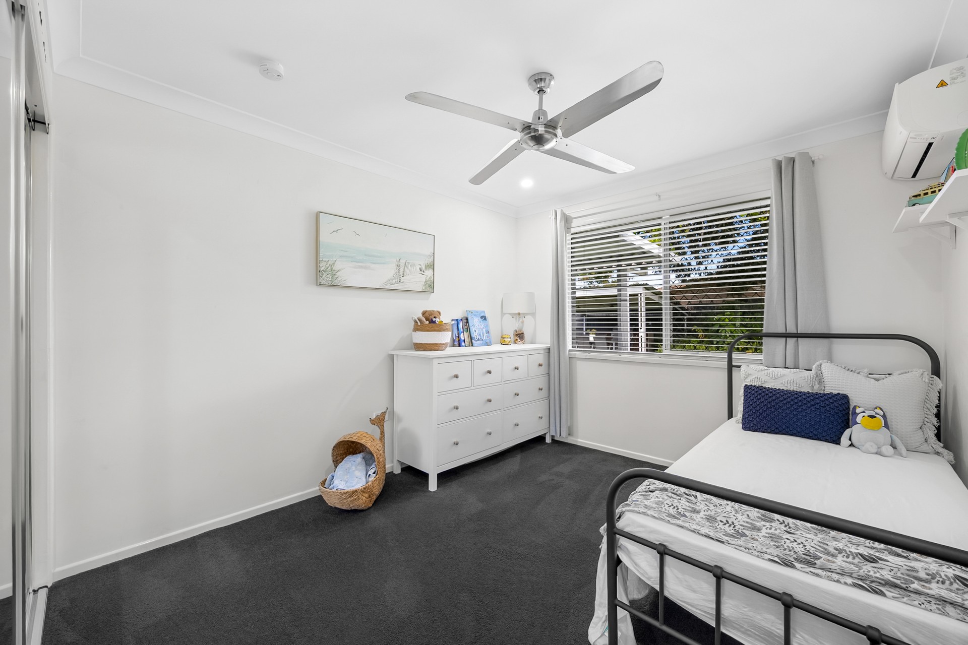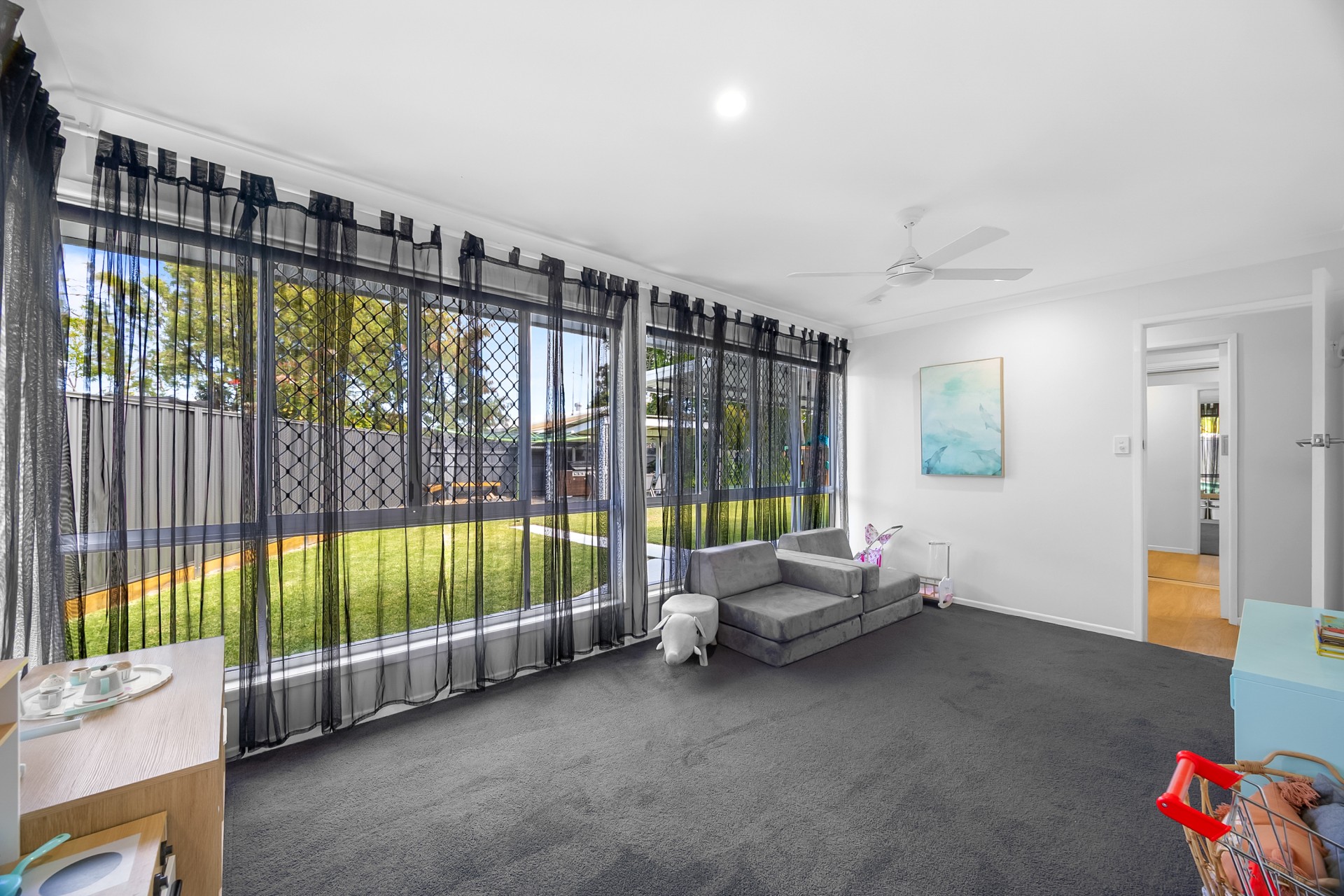 Inside, the home has been tastefully updated over the years, showcasing modern bathrooms and a contemporary kitchen. All four bedrooms are generously sized, with three offering large mirrored built-in wardrobes, air conditioning, and plush carpets for year-round comfort.