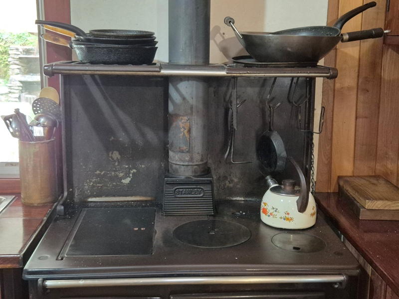 * Comfortable size lounge room with a cosy slow combustion wood fire
