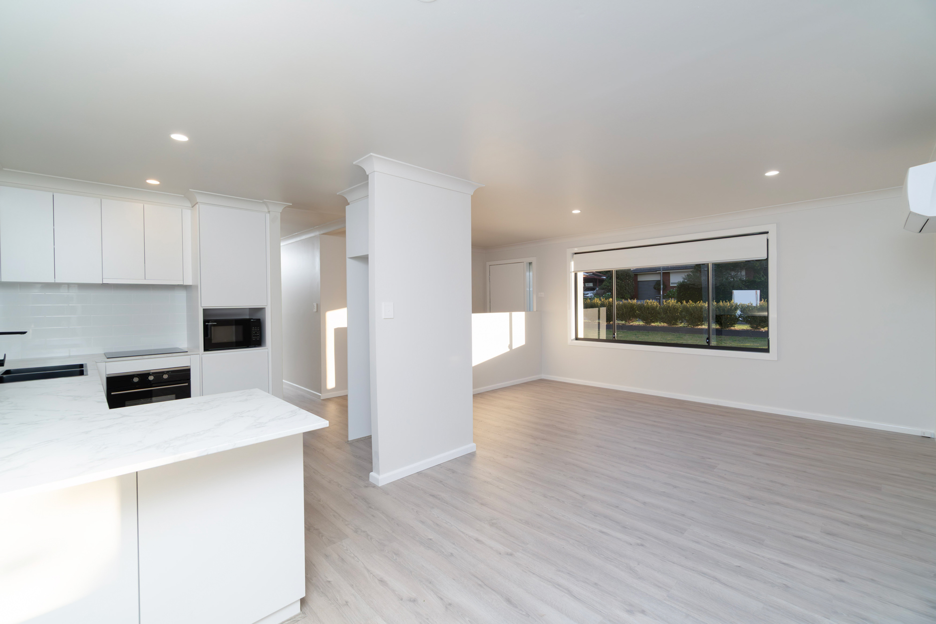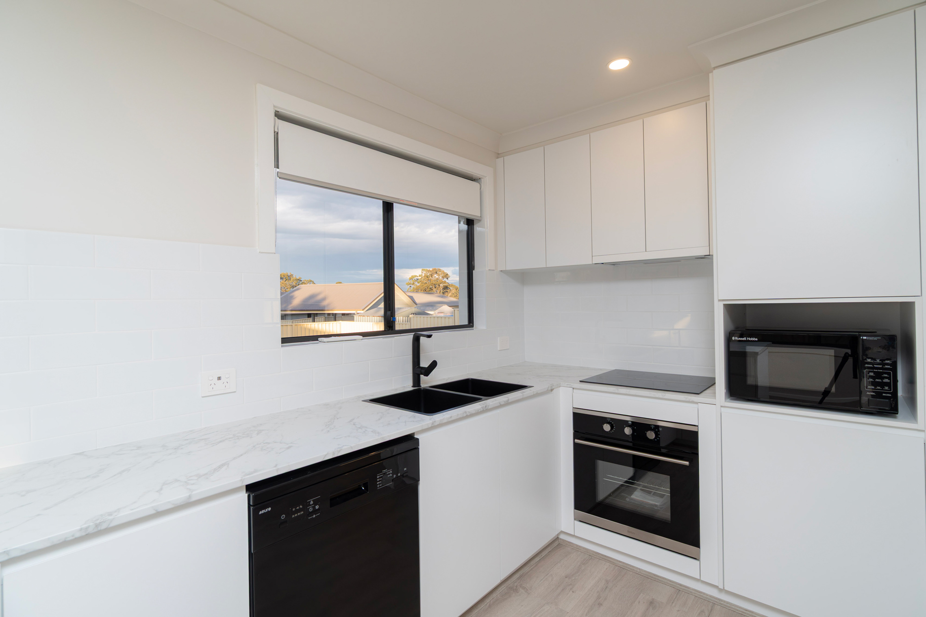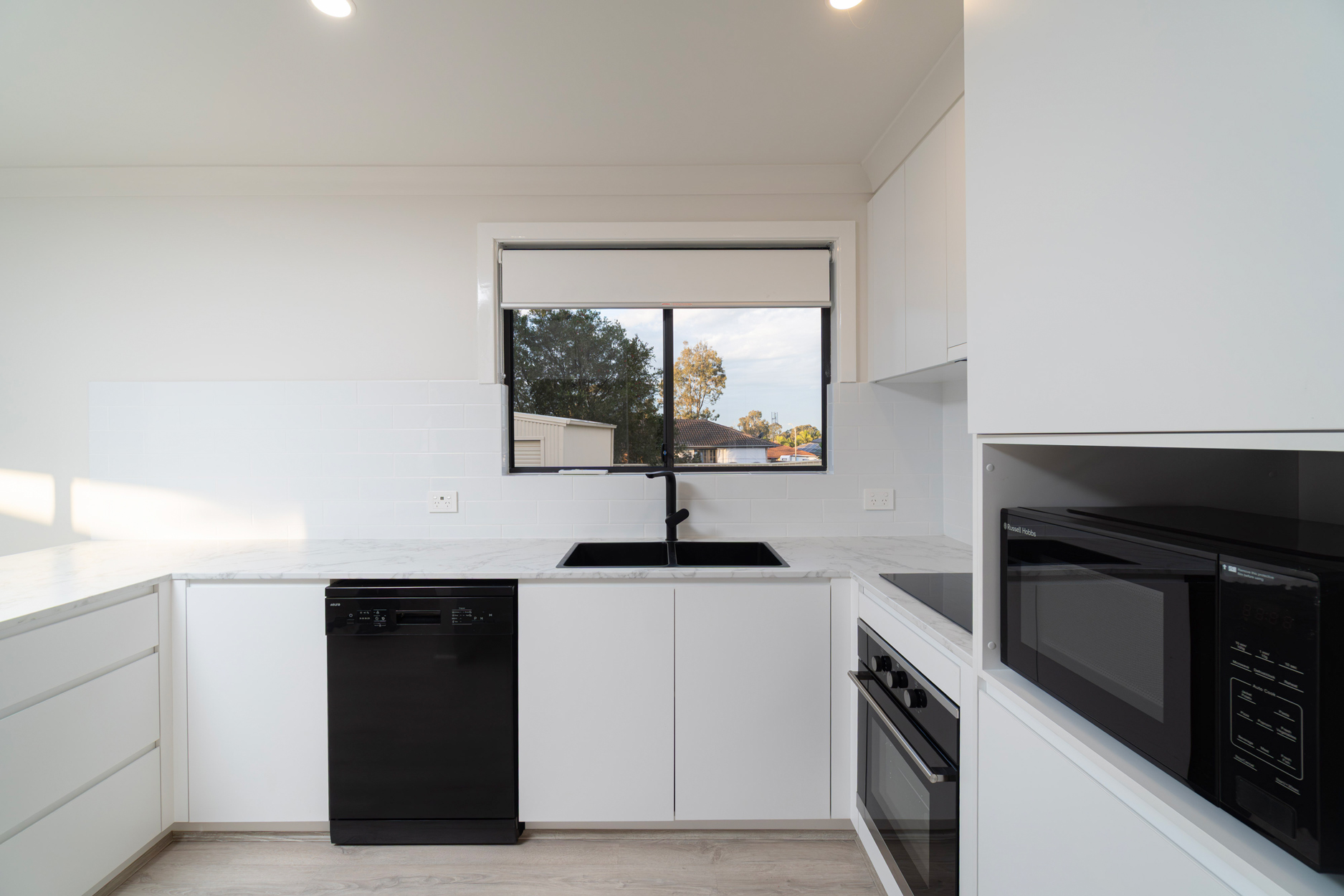 The heart of the home, the new kitchen, is a chef's dream with brand new appliances including an oven, range hood, dishwasher, and microwave. The sleek cabinetry and ample bench space make meal preparation a joy, while the adjacent dining area offers the perfect setting for memorable family gatherings.