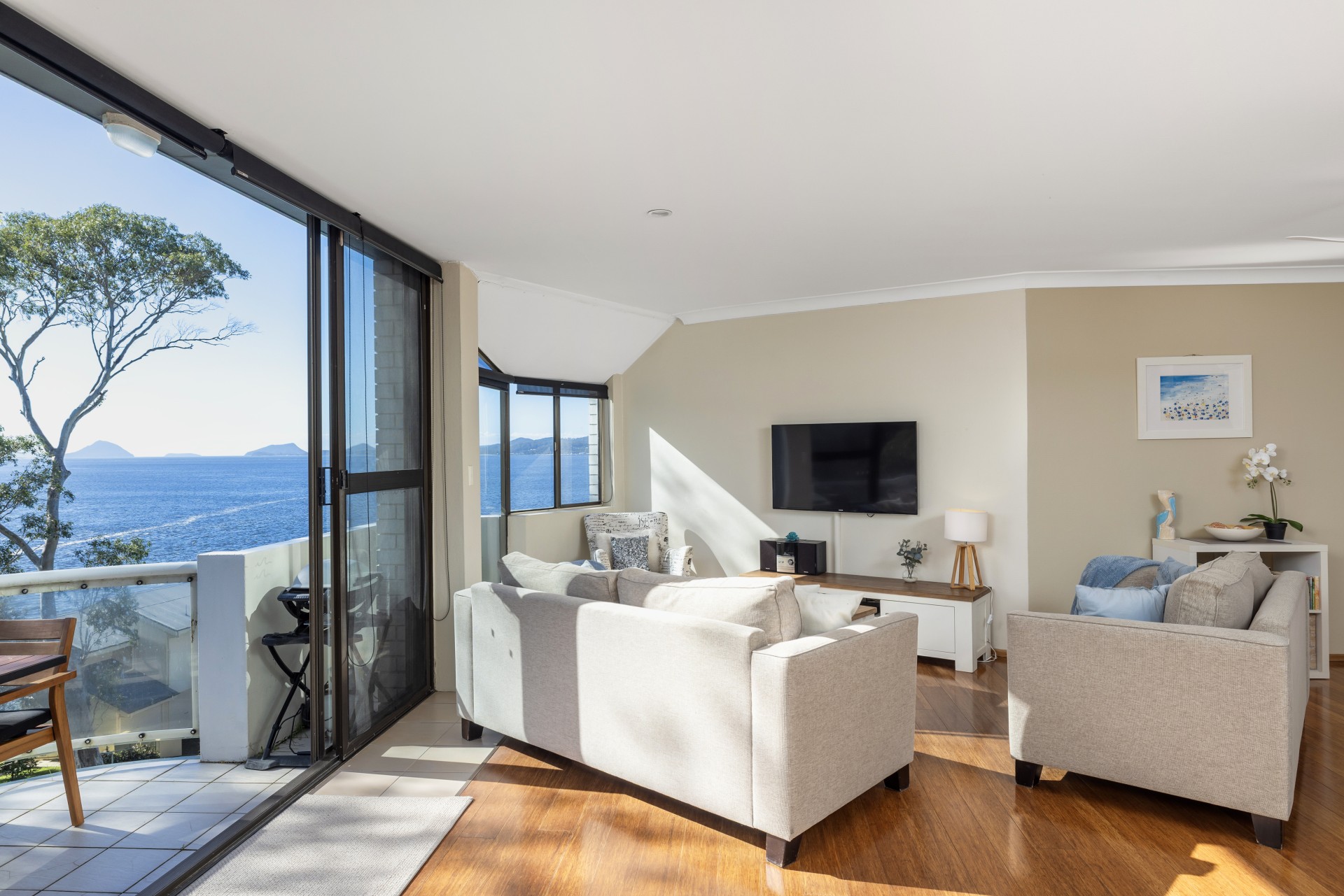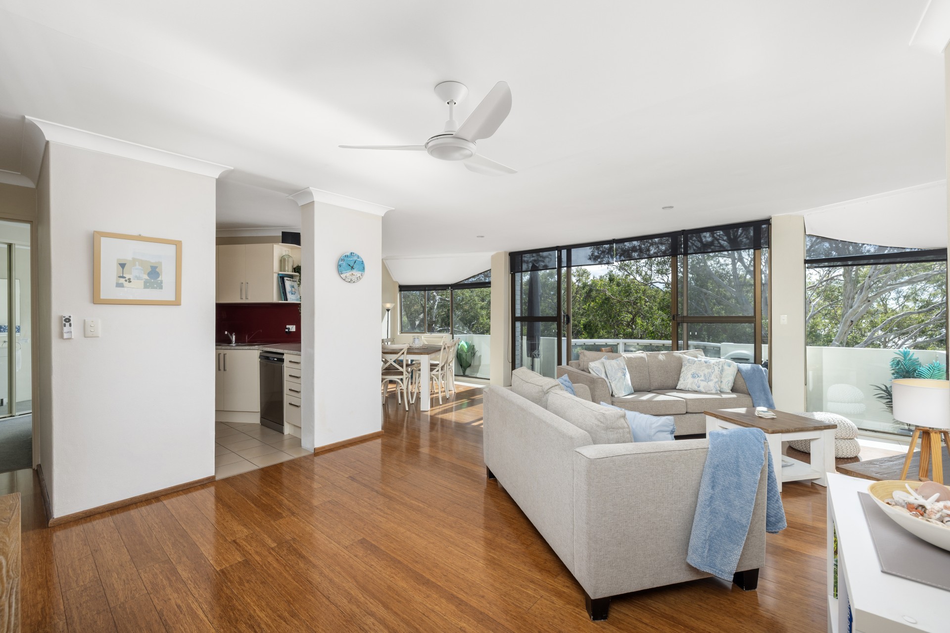 Enjoy spectacular sunrises and commanding water views over the bay and out to the Heads from this spacious apartment situated at tree height to spot koalas and a myriad of birdlife they call home. Be enchanted as you watch dolphins frolic in the bay. Immerse yourself in tranquility, hear the water lapping against the shore opposite. Feel the fresh coastal breezes sweep throughout the home, this is what makes this the ultimate choice to change from the city to the sea.